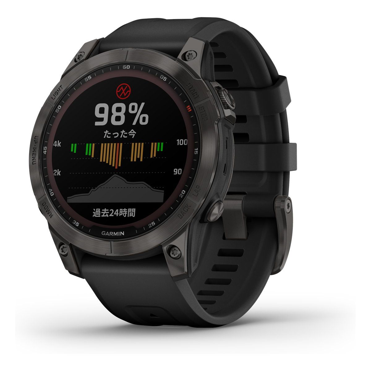 最先端のテクノロジーを搭載し、選び抜かれたマテリアルと、ビジネスにもスポーツにもフィットする洗練されたデザインで、ビジネスアスリートの365日あらゆる側面をサポートするハイグレードGPSスマートウォッチ。新たにオン/オフ切り替え可能なタッチスクリーンを採用。ソーラー充電機能がさらに進化。太陽電池面積を増やし、より高性能な導電性素材を使用することで、大幅な稼働時間の増加を実現。プリロードされた日本詳細地形図や世界のスキー、ゴルフコースマップに加え、海外大陸地図を無料でダウンロードできます。(日本詳細道路地図、登山地形図は有料でダウンロード可能) Garminの真骨頂であるGPS機能は、困難な環境でも高精度の追跡を可能にするGNSSマルチバンド(2周波数帯)に対応し、ビジネス・プライベート共に世界を舞台に活躍する方をサポート。