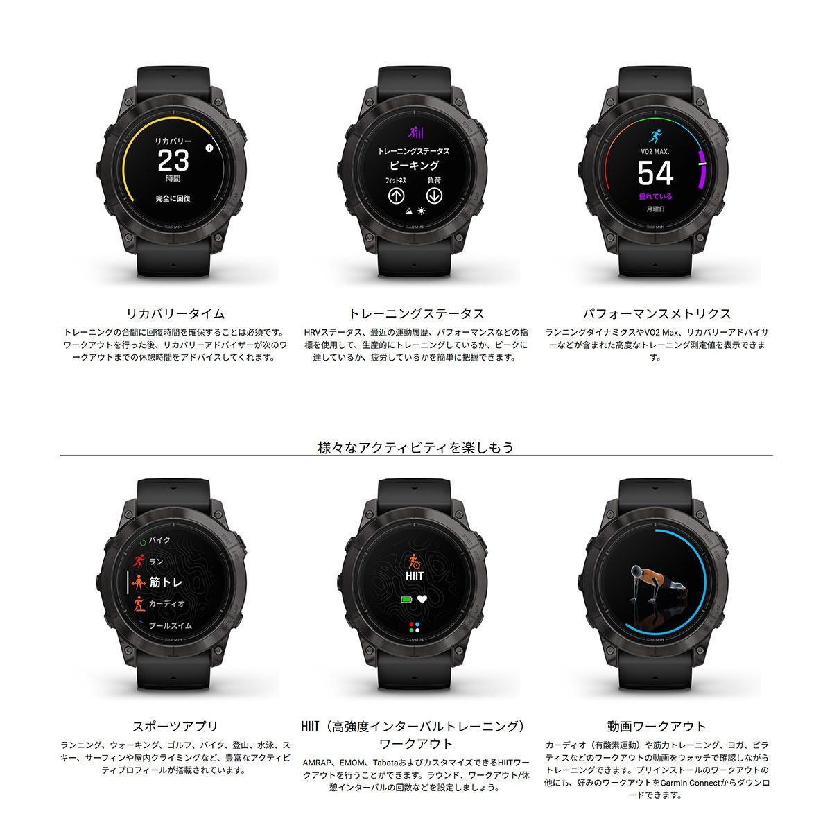 | 商品名 | ガーミン GARMIN epix Pro Gen 2 47mm Sapphire エピックス プロ サファイヤ 010-02803-52 Ti Carbon Gray DLC / Black GPS スマートウォッチ 腕時計 |