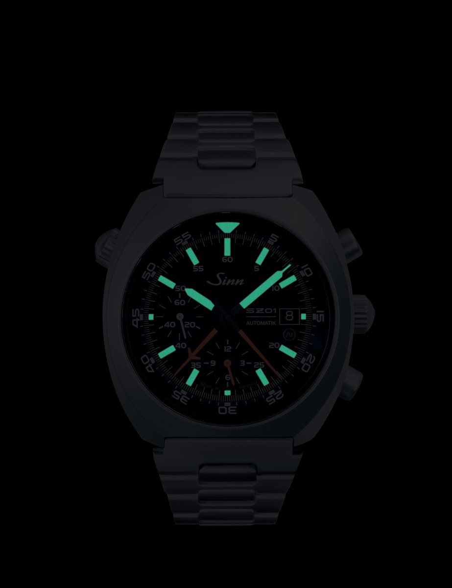 クロノグラフを読み取りやすくするために、センター配置の60分積算計を搭載したクロノグラフです。この機能性や美しい外観は、ドイツ人宇宙飛行士が1985年に宇宙の無重力空間での作動を立証した、ジンの伝説的スペース・クロノグラフをベースにしています。耐傷性の高いテギメント加工を施し、Arドライテクノロジーも搭載しています。