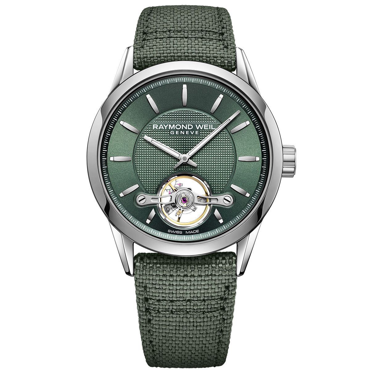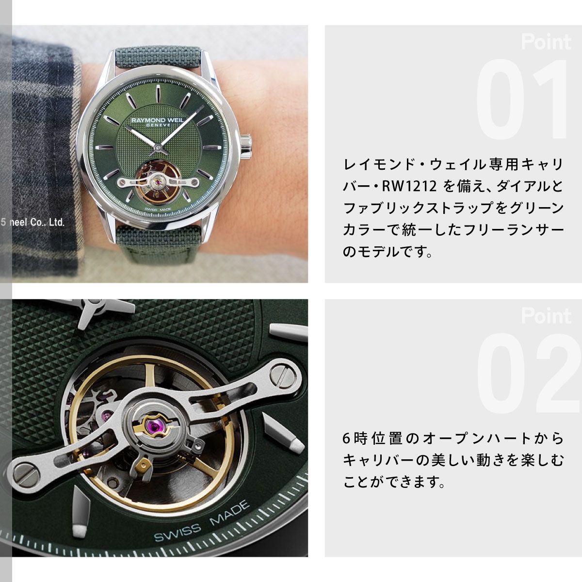 自社製キャリバー・RW1212を備え、ダイアルとファブリックストラップをグリーンカラーで統一したフリーランサーのモデルです。6時位置のオープンハートからキャリバーの美しい動きを楽しむことができます。サファイアクリスタルの風防にはアンチグレア加工を施し、光の映り込みを抑制しています。2007年に誕生したフリーランサーは、エレガントでありながらカジュアルにも見える現代的かつ都会的な仕上がりで、オン・オフどちらにも似合う洗練さを持っています。異彩を放つ印象的なデザインで、人と違うクリエイティブな自分を演出したいときに身に着けたいタイムピースです。