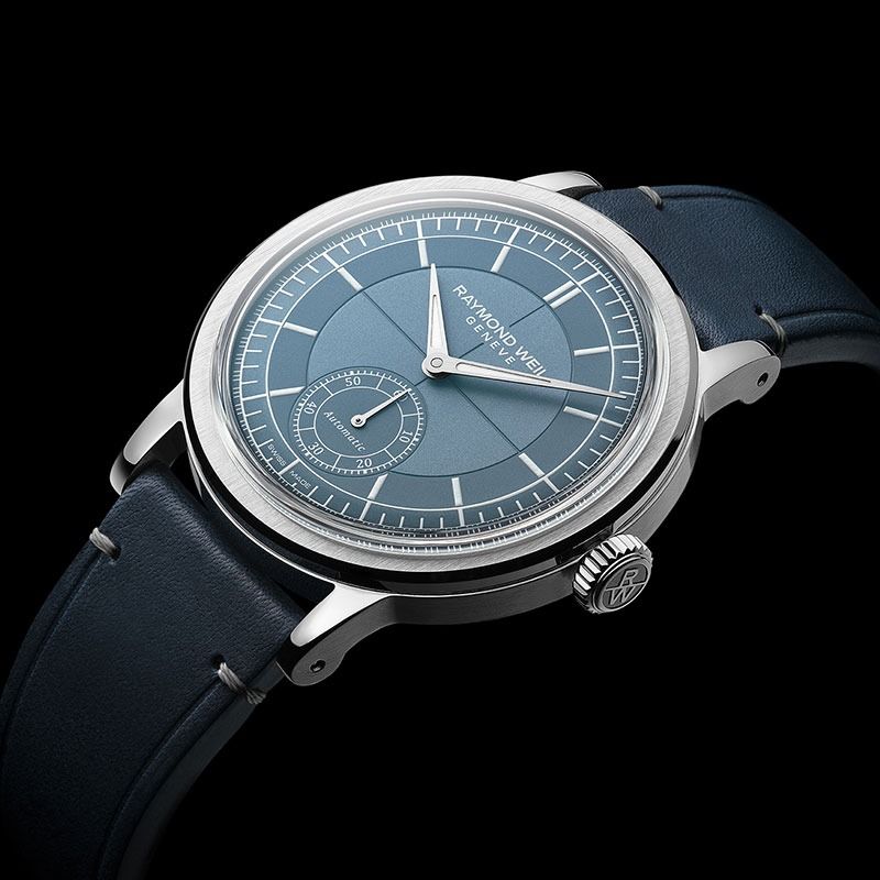 「ミレジム(millesime)」は、フランス語でヴィンテージを意味します。1930年代に流行したセクターダイアルや主にプラスチック製風防に見られたボックス型などの古典的なディティールに、現代の技術・素材・トレンドを交えるレイモンド・ウェイル独自の解釈を加えた、「ネオ・ヴィンテージウォッチ」です。ステンレススティール製ケースにキャリバー・RW4251、様々な仕上げを施したデニムブルーのセクターダイヤル、シルバーのインデックスを備え、スモールセコンドを搭載しています。