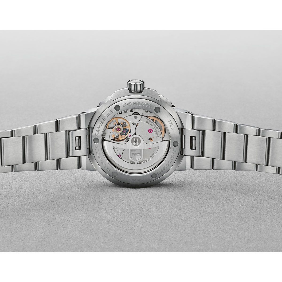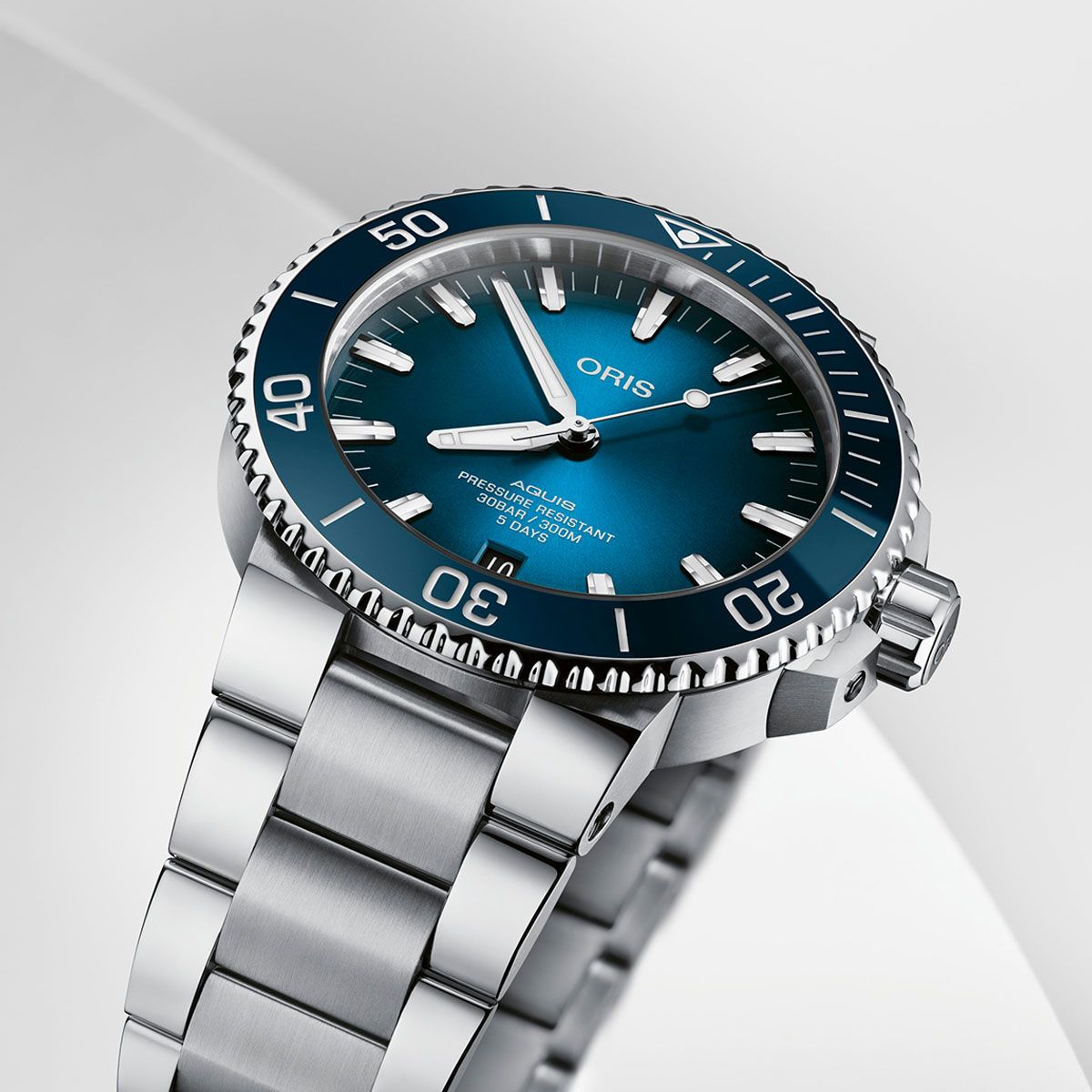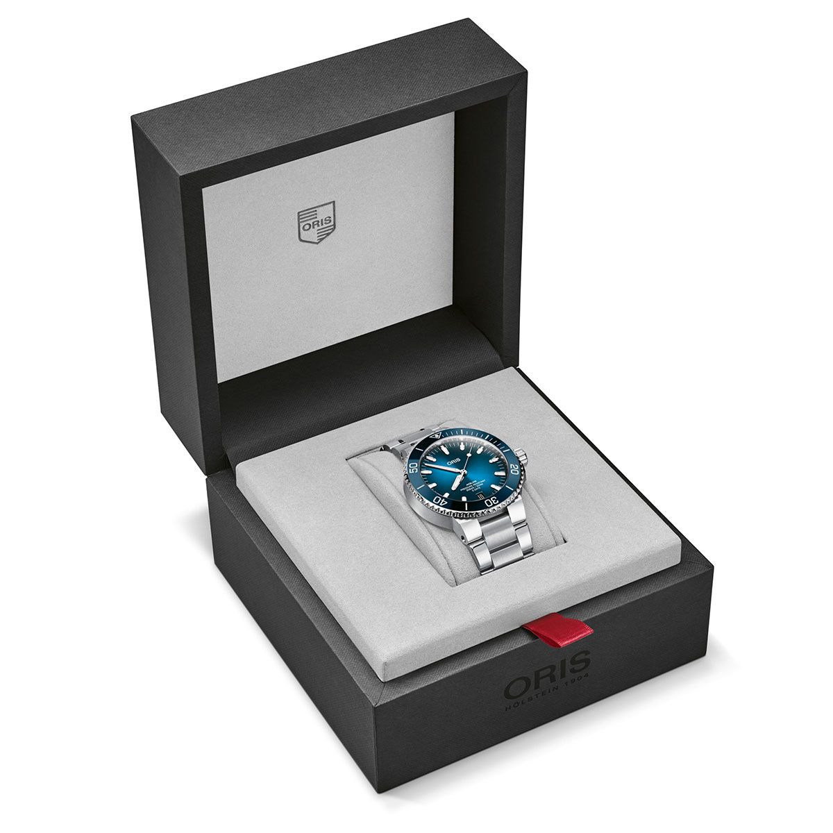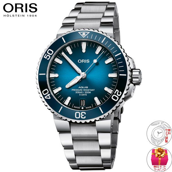 アクイスデイト キャリバー400は、オリスの新しい自社製自動巻キャリバーを搭載したダイバーズウォッチです。キャリバー400は、高精度、高耐磁性で5日間パワーリザーブ、オーバーホール推奨期間10年、品質保証期間10年のムーブメントで、新しい基準を設定するものです。300m防水の本格的なダイバーズウォッチでありながらスーツスタイルやカジュアルファッションなどシーンを選ばないデザインが特徴です。裏蓋のシースルーケースバックからは機械式ムーブメントを鑑賞することもできます。別売りのラバーストラップへは特別な工具を使わなくてもワンタッチで交換可能です。
