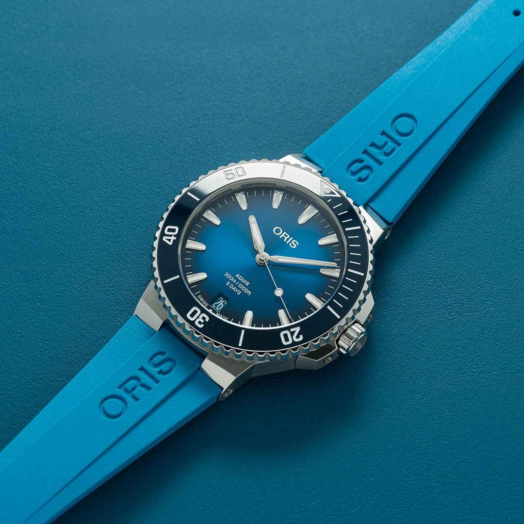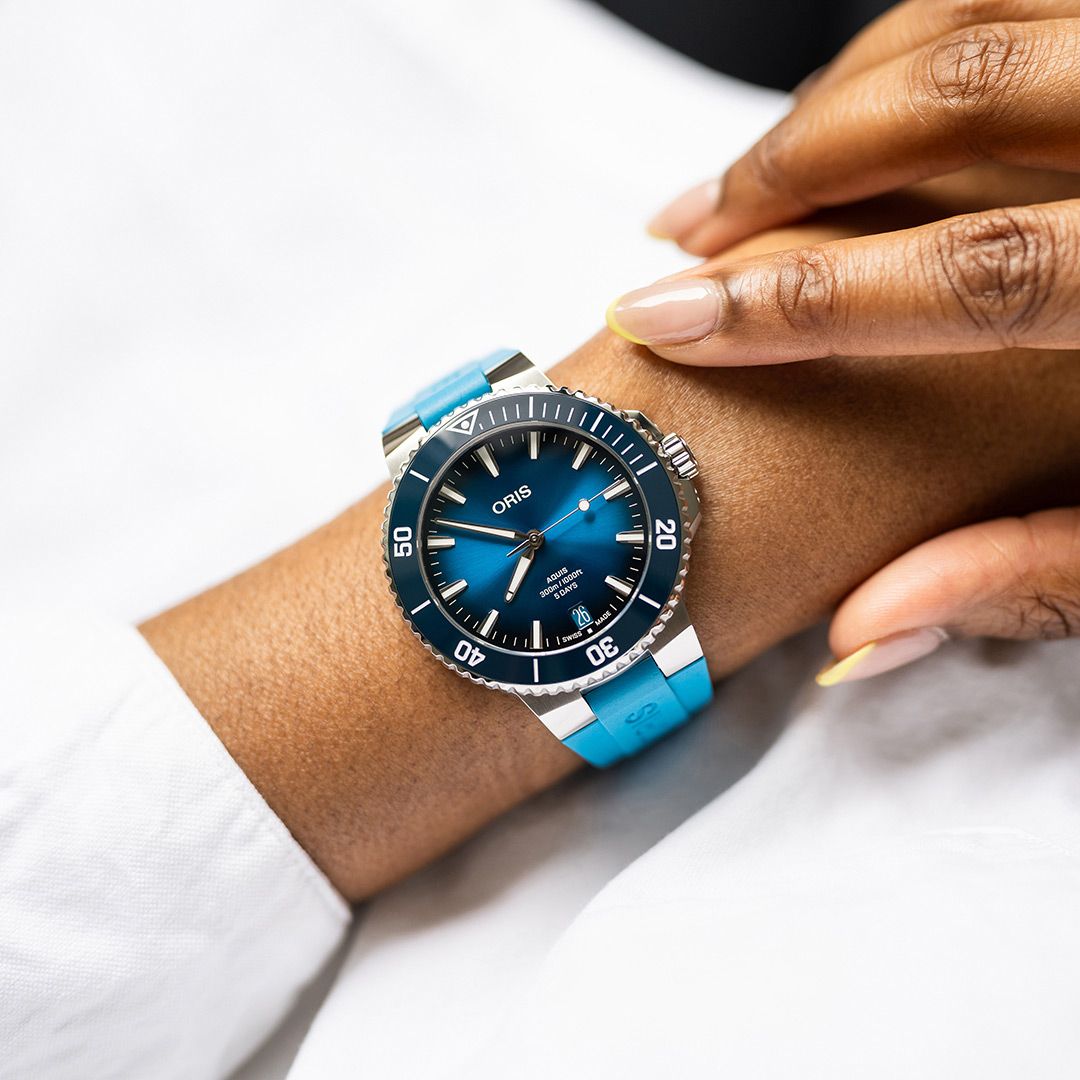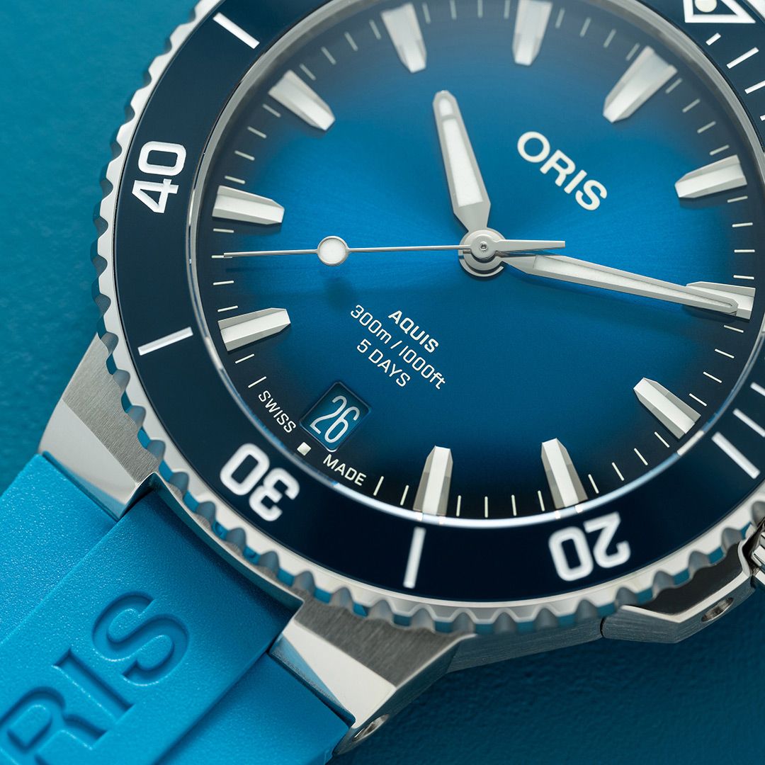 2024年に新しく生まれ変わったアクイスデイト キャリバー400は、よりエレガントでラグジュアリーなダイバーズウォッチです。搭載しているオリス自社開発自動巻きキャリバー400は、高精度、高耐磁性で5日間パワーリザーブ、オーバーホール推奨期間10年、品質保証期間10年のムーブメントで、新しい基準を設定するものです。300m防水の本格的なダイバーズウォッチでありながらスーツスタイルやカジュアルファッションなどシーンを選ばないデザインが特徴。裏蓋のシースルーケースバックからは機械式ムーブメントを鑑賞することもできます。時計を着用したままクラスプ部分でブレスレットのサイズを微調整することができる機構はオリスが特許を取得しています。別売りのメタルブレスレットやラバーストラップへは特別な工具を使わなくてもワンタッチで交換可能です。