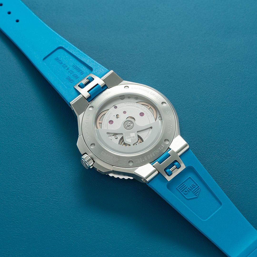 | 2024年に新しく生まれ変わったアクイスデイト キャリバー400は、よりエレガントでラグジュアリーなダイバーズウォッチです。搭載しているオリス自社開発自動巻きキャリバー400は、高精度、高耐磁性で5日間パワーリザーブ、オーバーホール推奨期間10年、品質保証期間10年のムーブメントで、新しい基準を設定するものです。300m防水の本格的なダイバーズウォッチでありながらスーツスタイルやカジュアルファッションなどシーンを選ばないデザインが特徴。裏蓋のシースルーケースバックからは機械式ムーブメントを鑑賞することもできます。時計を着用したままクラスプ部分でブレスレットのサイズを微調整することができる機構はオリスが特許を取得しています。別売りのメタルブレスレットやラバーストラップへは特別な工具を使わなくてもワンタッチで交換可能です。 |