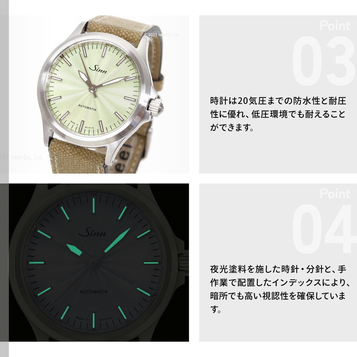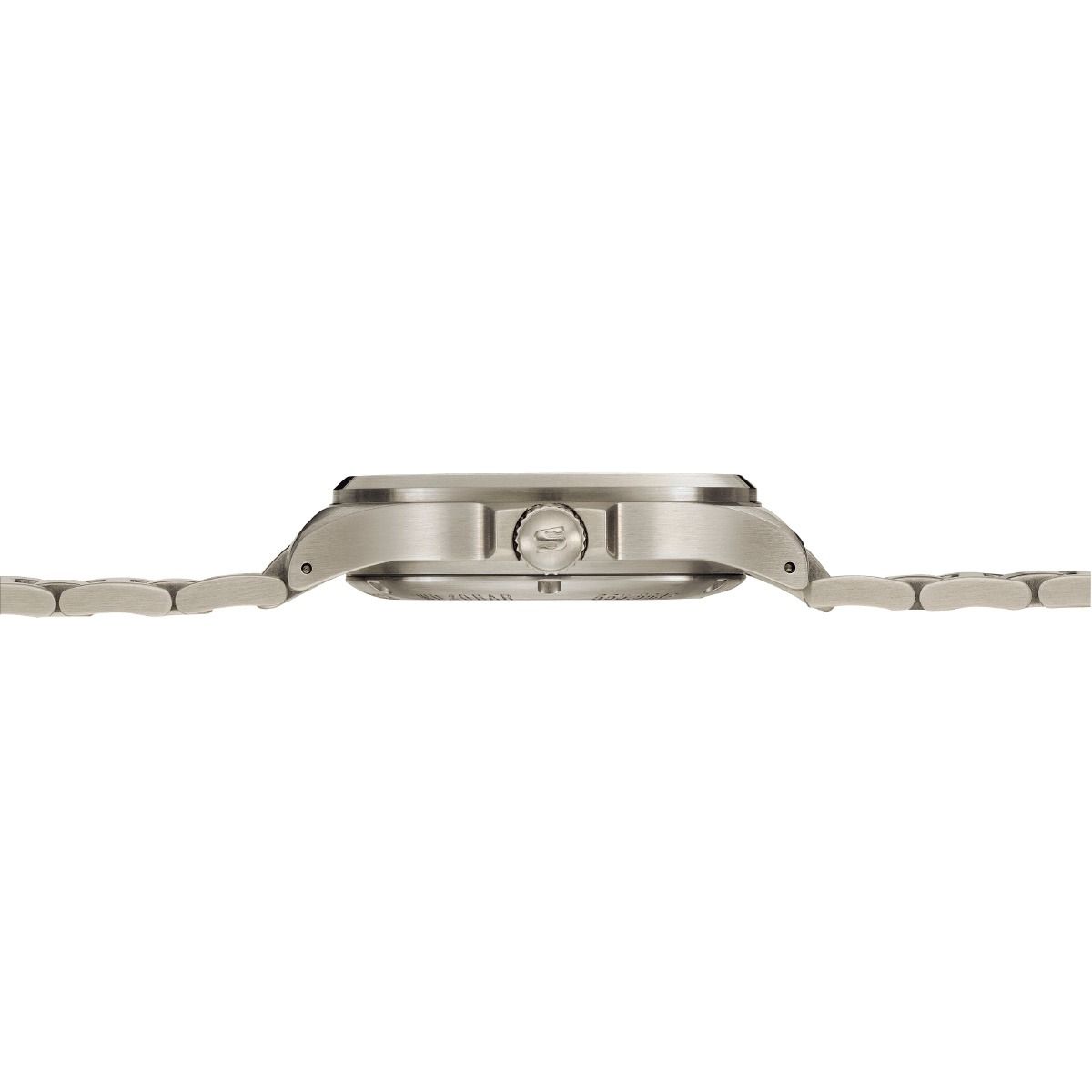 時計の必要最小限の機能である時・分・秒と日付表示のみに特化したシンプルなデザインで、防磁性、防水性といったDIN規格(ドイツ工業規格)に基づき製作されています。サファイアクリスタルの風防と裏蓋で20気圧の防水も備えた高品質モデル。シンプルなバーインデックスは長く使い続けられる普遍的なデザインであり、あらゆる場面でスタイルを選ばないデイリーユースとして理想的な逸品です。