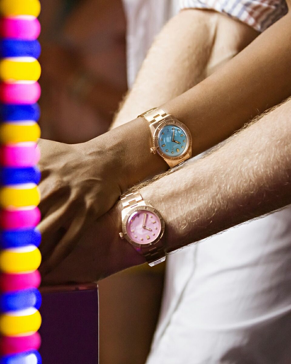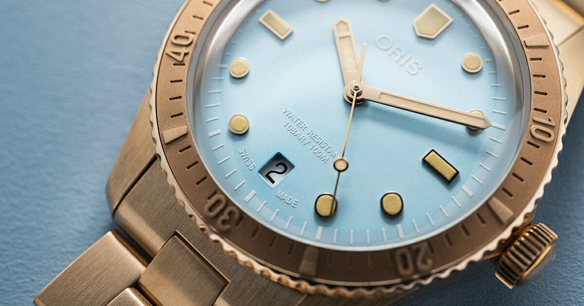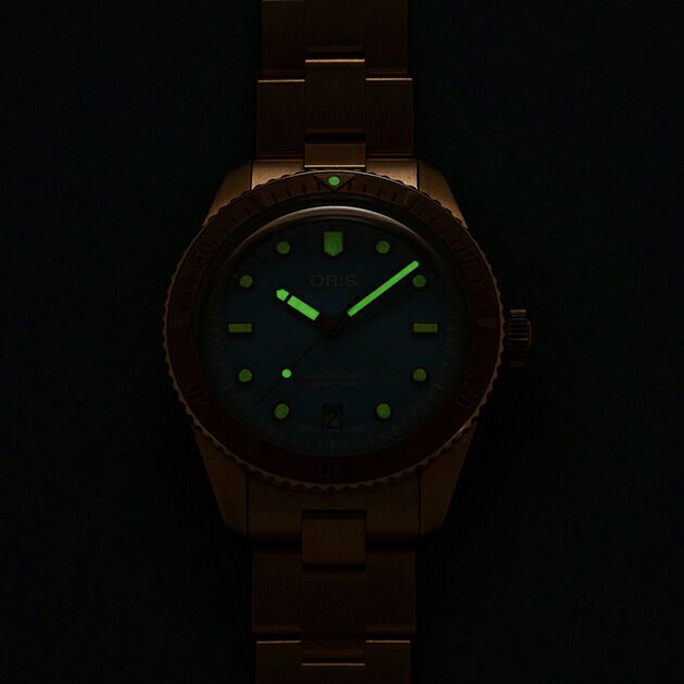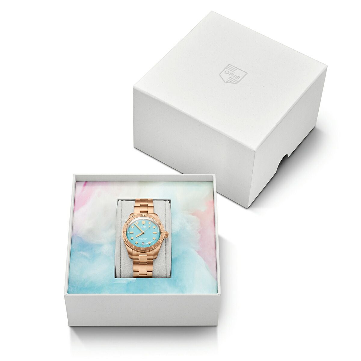 新ダイバーズ65「コットンキャンディ」は、笑顔をもたらすというシンプルな使命を帯びています。オリスがヘルシュタイン エディション2020で採用したオールブロンズ製ケース・ベゼル・リューズ・ブレスレットに、スカイブルー、ワイルドグリーン、リップスティックピンクのコットンカラーを合わせました。38mm径ケースはユニセックス仕様で、ブロンズは自然で魅力的な経年変化を経て独自のストーリーを生み出します。各モデルにはスイス製自動巻きムーブメントが搭載され、ドーム型サファイアクリスタル、10気圧(100m)防水、針とアプライドインデックスには鮮やかなスーパールミノバ?が使用されるなど、「ダイバーズ65」コレクションの代名詞ともいえる品質基準を満たしています。
