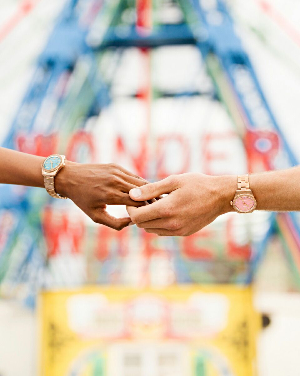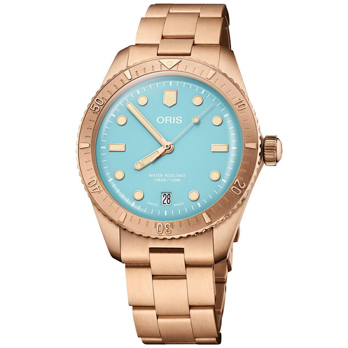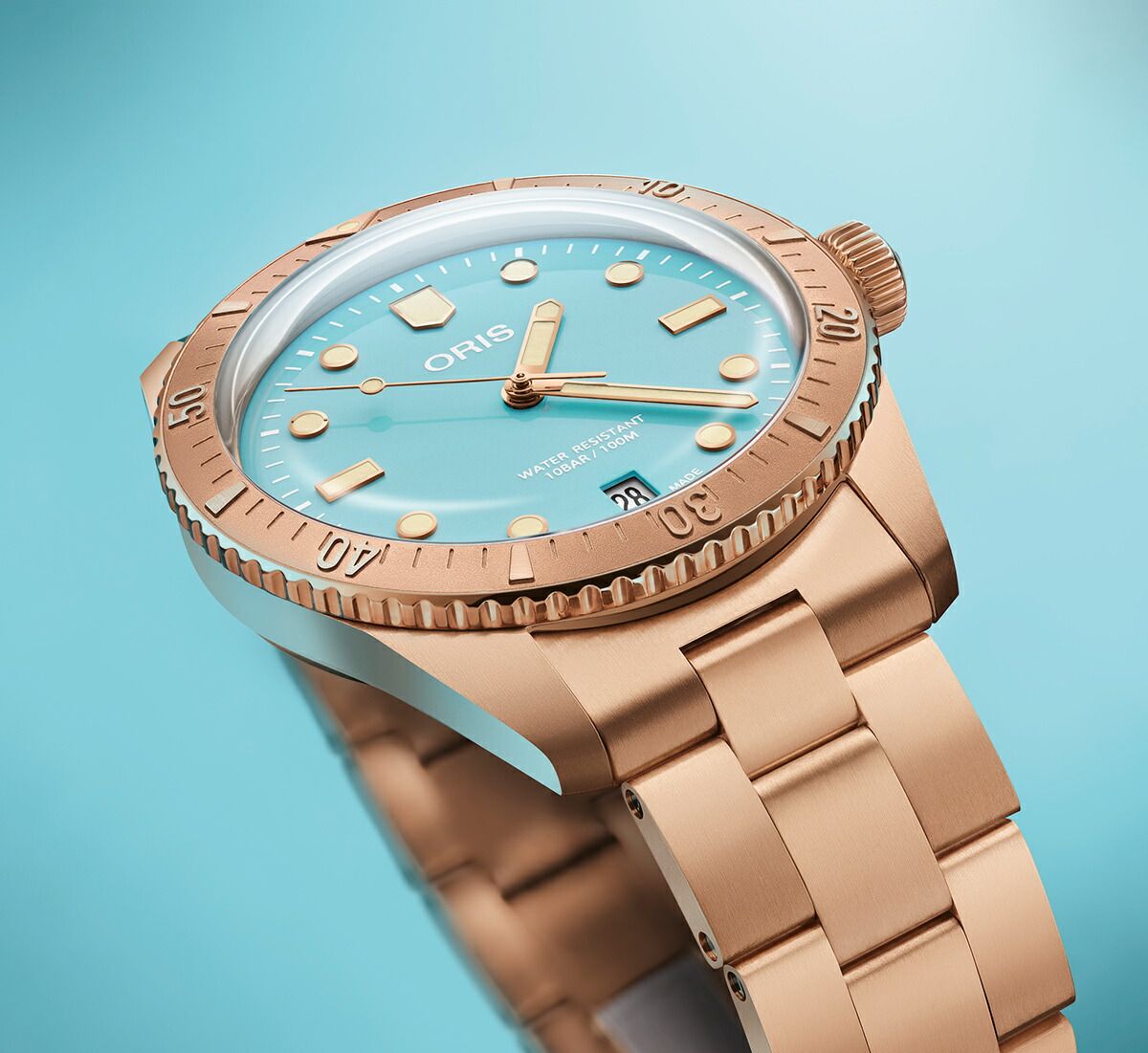 新ダイバーズ65「コットンキャンディ」は、笑顔をもたらすというシンプルな使命を帯びています。オリスがヘルシュタイン エディション2020で採用したオールブロンズ製ケース・ベゼル・リューズ・ブレスレットに、スカイブルー、ワイルドグリーン、リップスティックピンクのコットンカラーを合わせました。38mm径ケースはユニセックス仕様で、ブロンズは自然で魅力的な経年変化を経て独自のストーリーを生み出します。各モデルにはスイス製自動巻きムーブメントが搭載され、ドーム型サファイアクリスタル、10気圧(100m)防水、針とアプライドインデックスには鮮やかなスーパールミノバ?が使用されるなど、「ダイバーズ65」コレクションの代名詞ともいえる品質基準を満たしています。