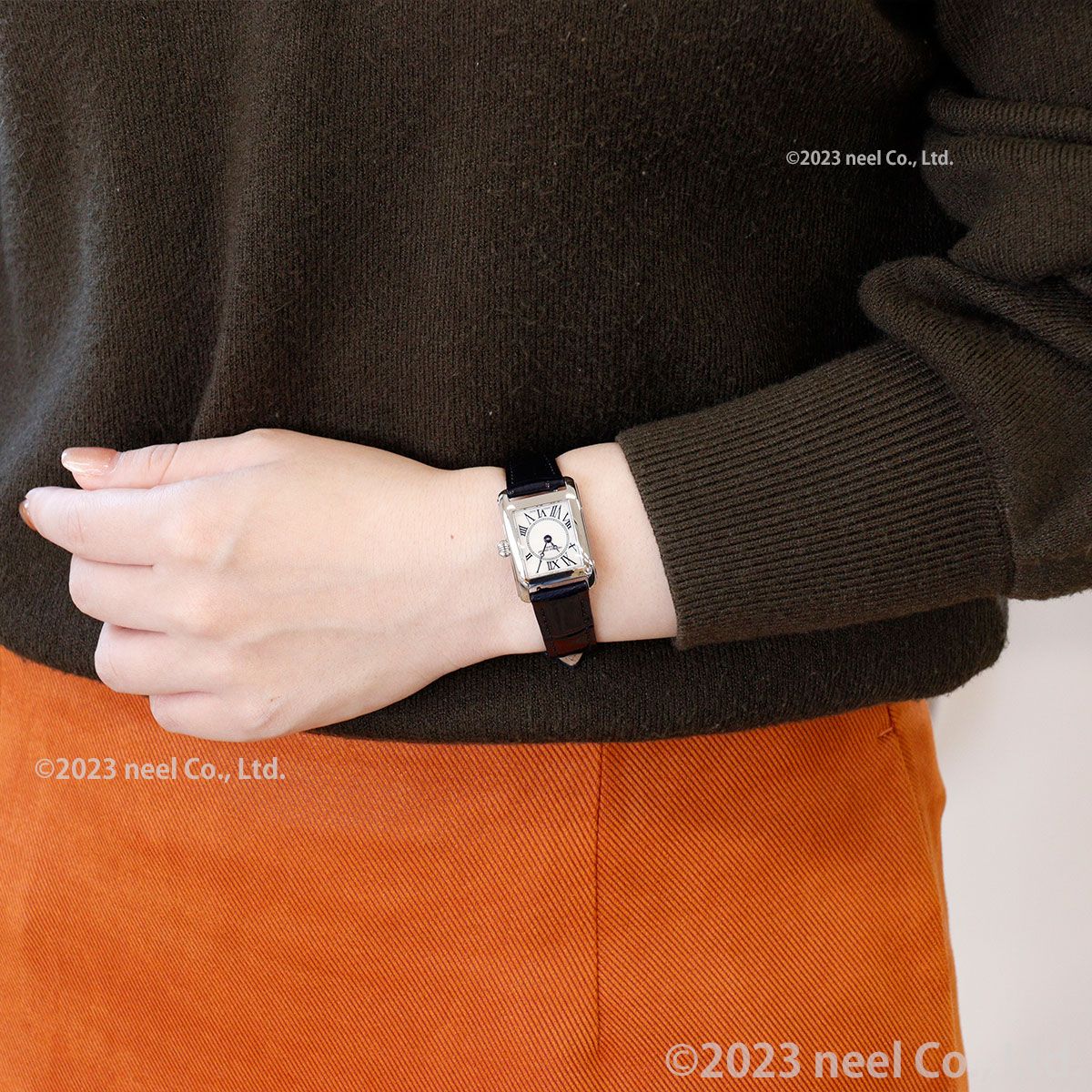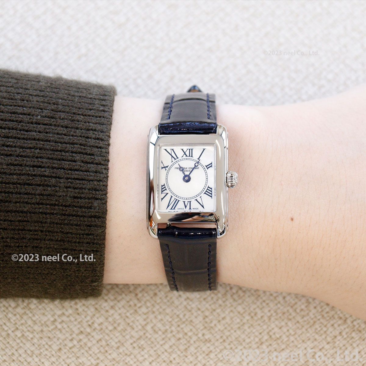 フランス語で「スクエア」を意味する「カレ(Carree)」。1920年代後半に時代を博したエレガントでファッショナブルな女性からインスピレーションを受けたデザインに、ローマ数字のインデックス、艶やかなマザーオブパール文字盤、ブレゲ調針を採用。クラシカルエレガントな表情で手元を美しく飾ります。[フレデリックコンスタント]