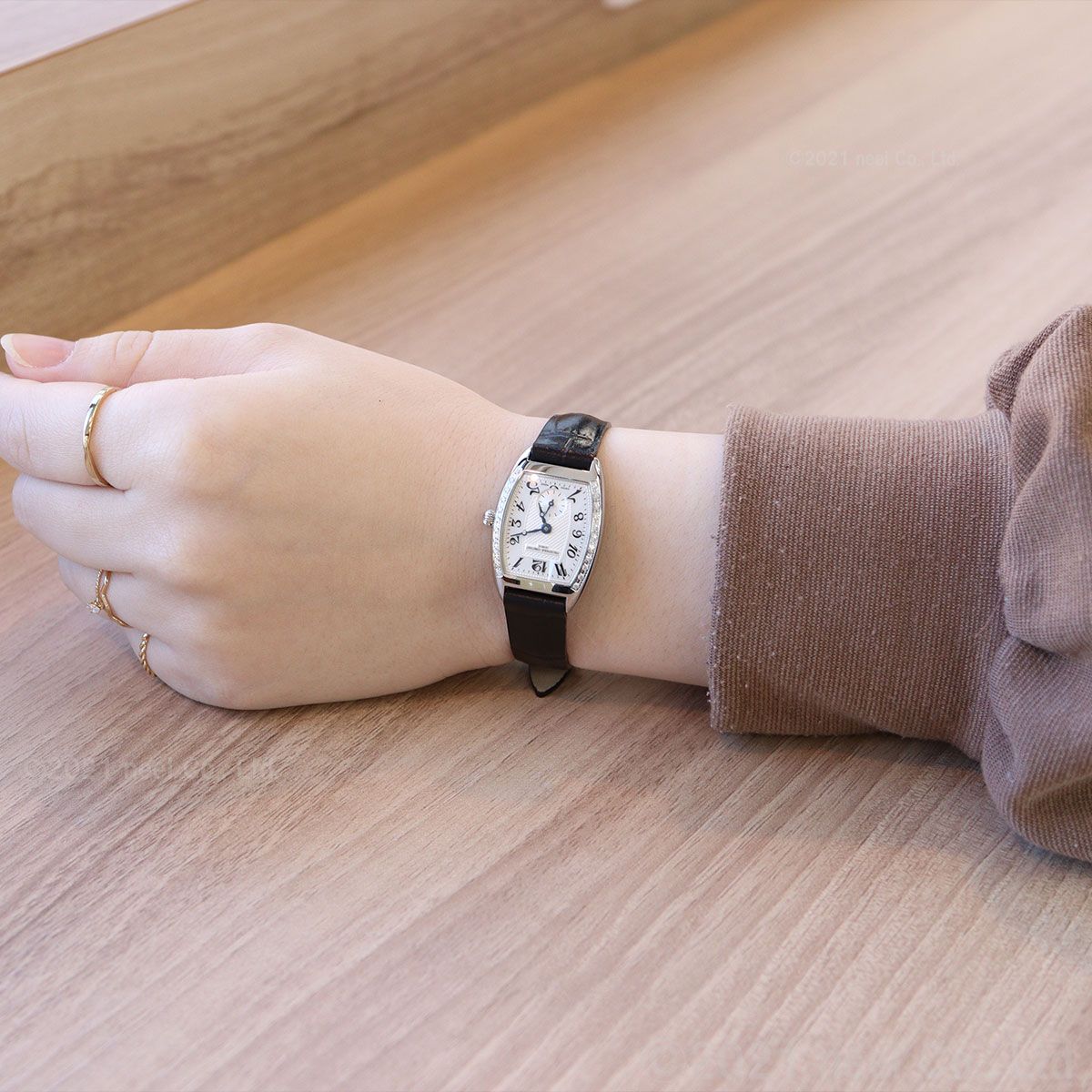 1940年代に興った装飾様式クラシック アールデコの時代、丸型の懐中時計から腕時計に時代が移り変わる頃、デサイン性の高いケースとしてトノーケースが登場しました。トノーケースにデフォルメしたアラビア数字インデックスが特徴のスモールセコンド付クォーツ時計。ケースサイドにはダイヤモンドが22石あしらわれた日本限定モデルです。