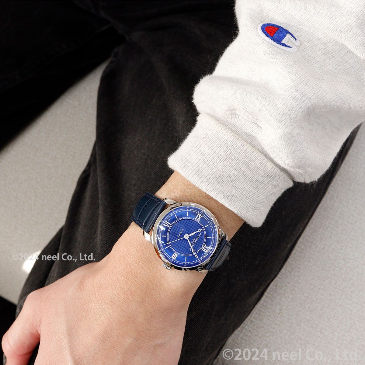 クラシカルエレガントを象徴するベーシックモデル。クリスタルケースバックからは搭載したラ・ジュー・ペレ社のロングパワーリザーブムーブメントが覗きます。時・分針はブレゲ針、カーブする文字盤に沿うようにローマン数字とバーインデックスを植字、中央には段差をつけてギョーシェ装飾をあしらいモダンな印象へ。奥行のある凝った仕上げを施した上品なクラシカルウォッチです。