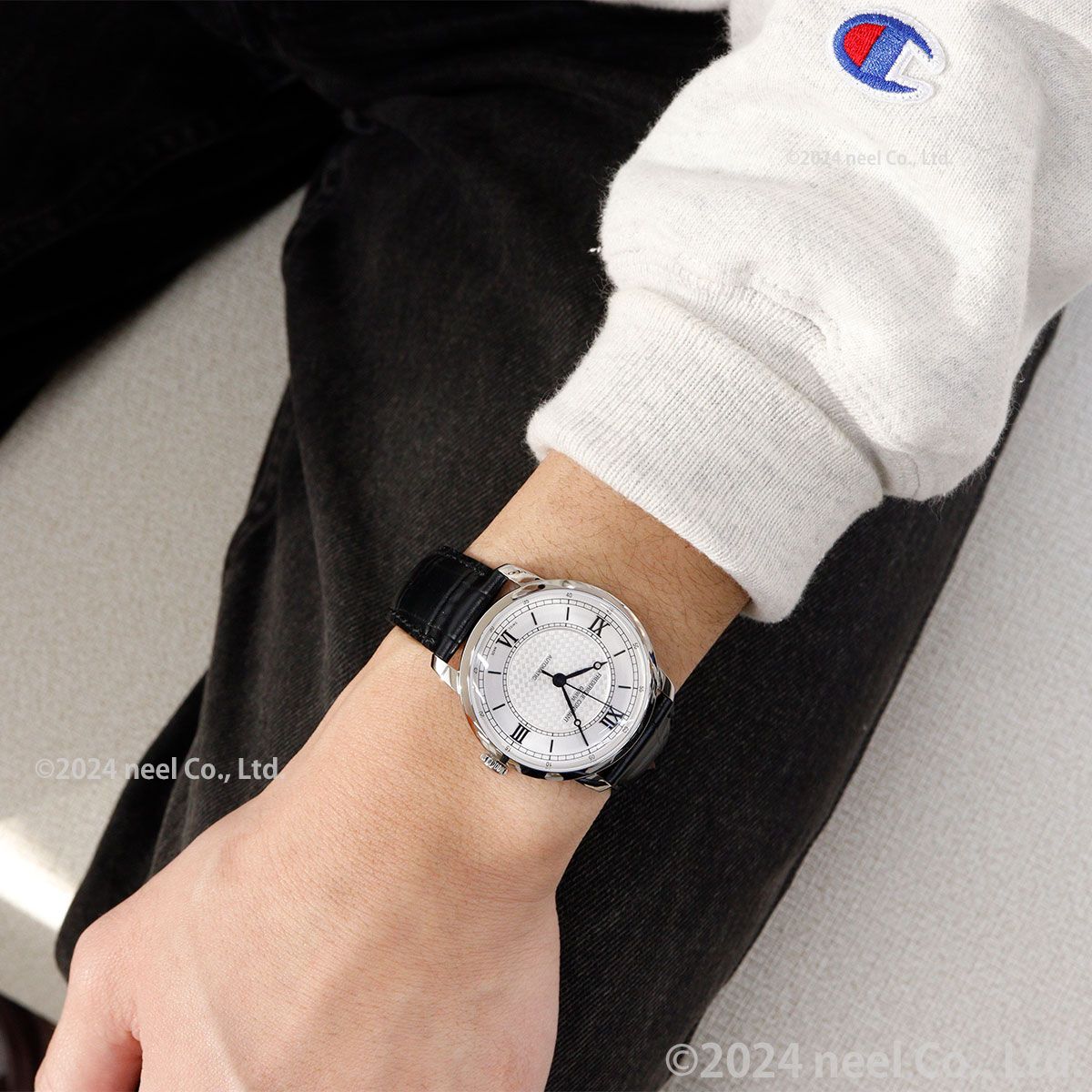 クラシカルエレガントを象徴するベーシックモデル。クリスタルケースバックからは搭載したラ・ジュー・ペレ社のロングパワーリザーブムーブメントが覗きます。時・分針はブレゲ針、カーブする文字盤に沿うようにローマン数字とバーインデックスを植字、中央には段差をつけてギョーシェ装飾をあしらいモダンな印象へ。奥行のある凝った仕上げを施した上品なクラシカルウォッチです。
