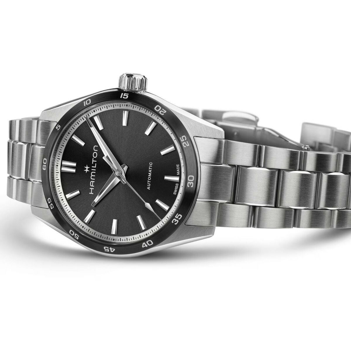 機能性とスタイルの両方を求める方にぴったりな「ジャズマスター パフォーマー」は、パワフルでスポーツシックな外観が特徴です。標準持続時間80時間のH-10自動巻きムーブメントが駆動する「ジャズマスター パフォーマー オート」は、34mmのステンレススチール製ケースに、シンプルなブラックダイヤルと、洗練されたステンレススチール製ブレスレットが組み合わされています。