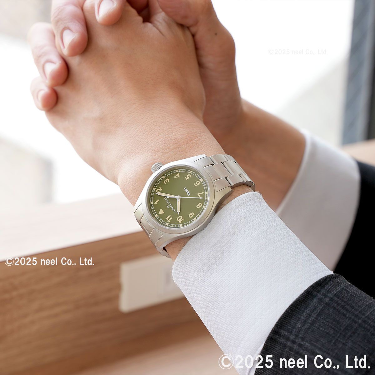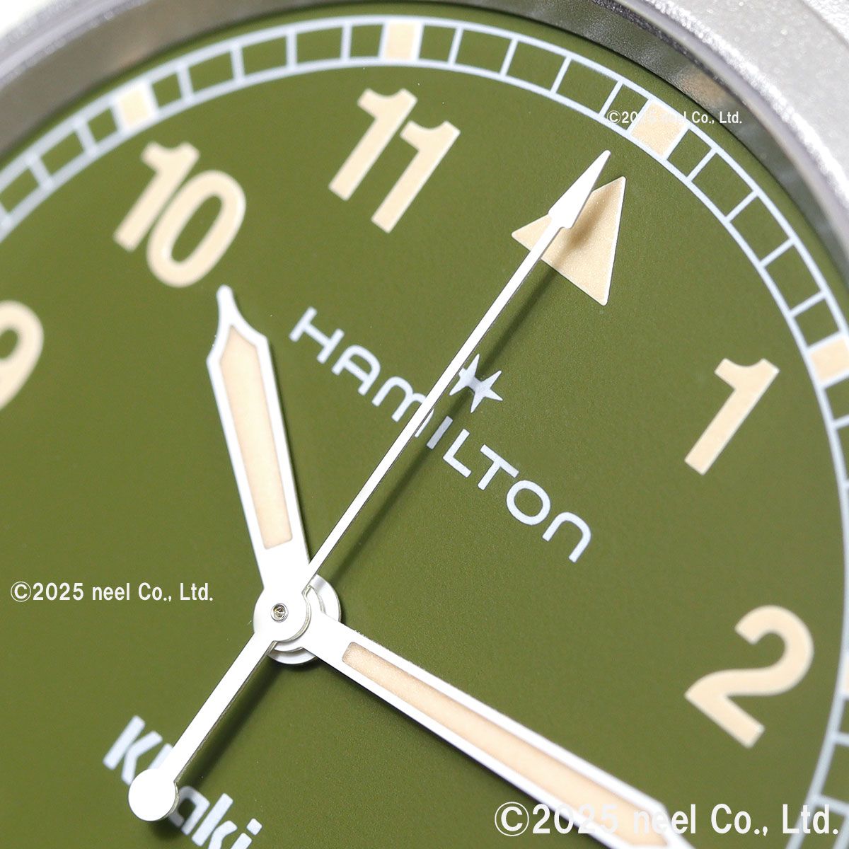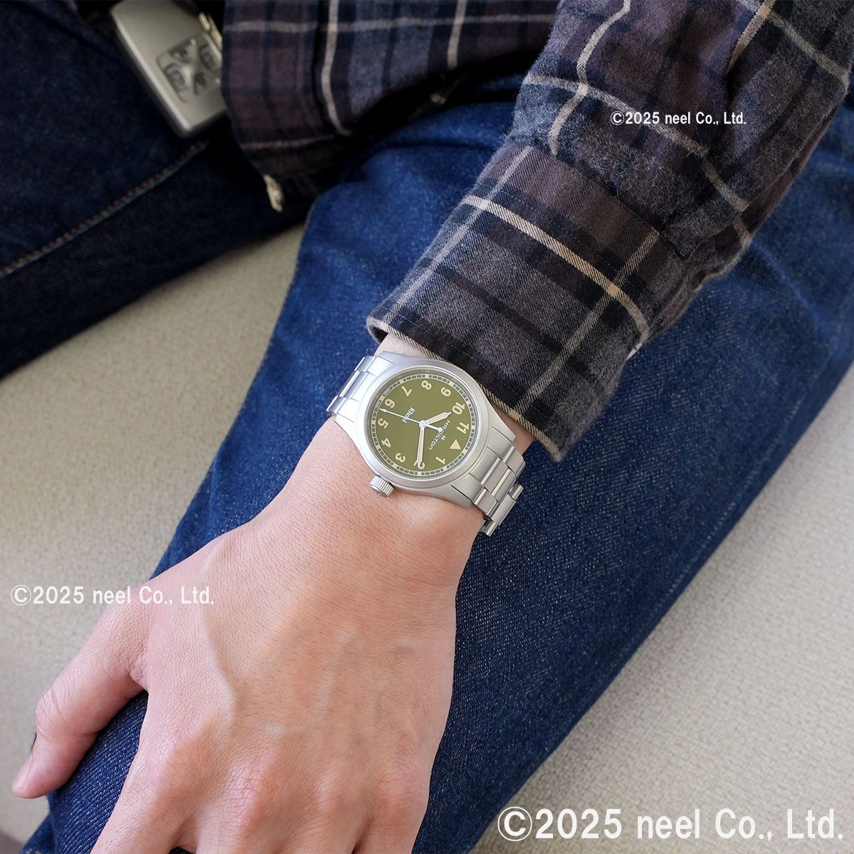 「カーキ フィールド クォーツ」は、冒険のために準備された、信頼できるたくましいパートナーです。ハミルトンが誇る精密さ、革新性、実用性にこだわったデザインにインスパイアされた「カーキ フィールド クォーツ」に、38mmのカーキグリーンダイヤルと、モダンなメタルブレスレットを組み合わせたモデルです。