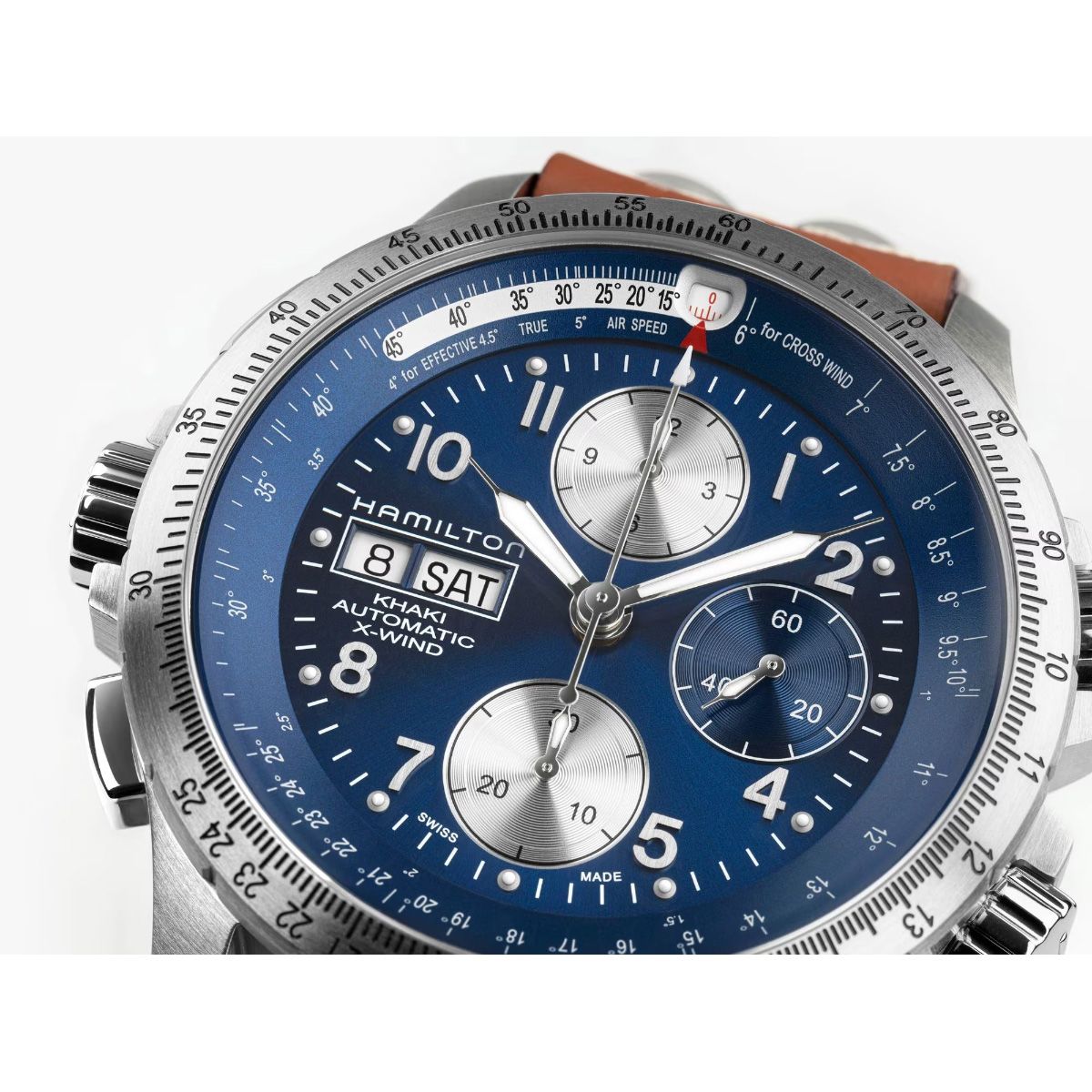パイロットのためにデザインされ、冒険心を き立てる「カーキ アビエーション X-ウィンド デイ デイト オートクロノ」は、新色を大胆に組み合わせています。印象的なブルーダイヤル、インナー回転ベゼル、標準持続時間60時間を備えたこの高性能なタイムピースは、H-21ムーブメントを搭載し、人生という冒険に、精度高くスタイリッシュに挑みたい人々に最適です。