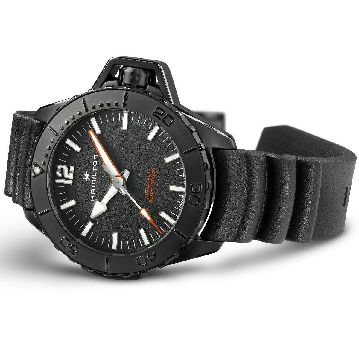 大胆で新しいデザインを携えた「カーキ ネイビー オープンウォーター オート」は、ハミルトンで最も技術的に優れたマリンウォッチです。精度、視認性、耐久性を追求して設計されたこの精密機器は、ユニークなフォルムのクラウンプロテクターと、波の形状のラバーストラップとともに、海の計り知れないパワーを腕元にもたらします。水中の冒険を楽しむために製作されたハミルトンの「カーキ ネイビー」コレクションをご覧ください。