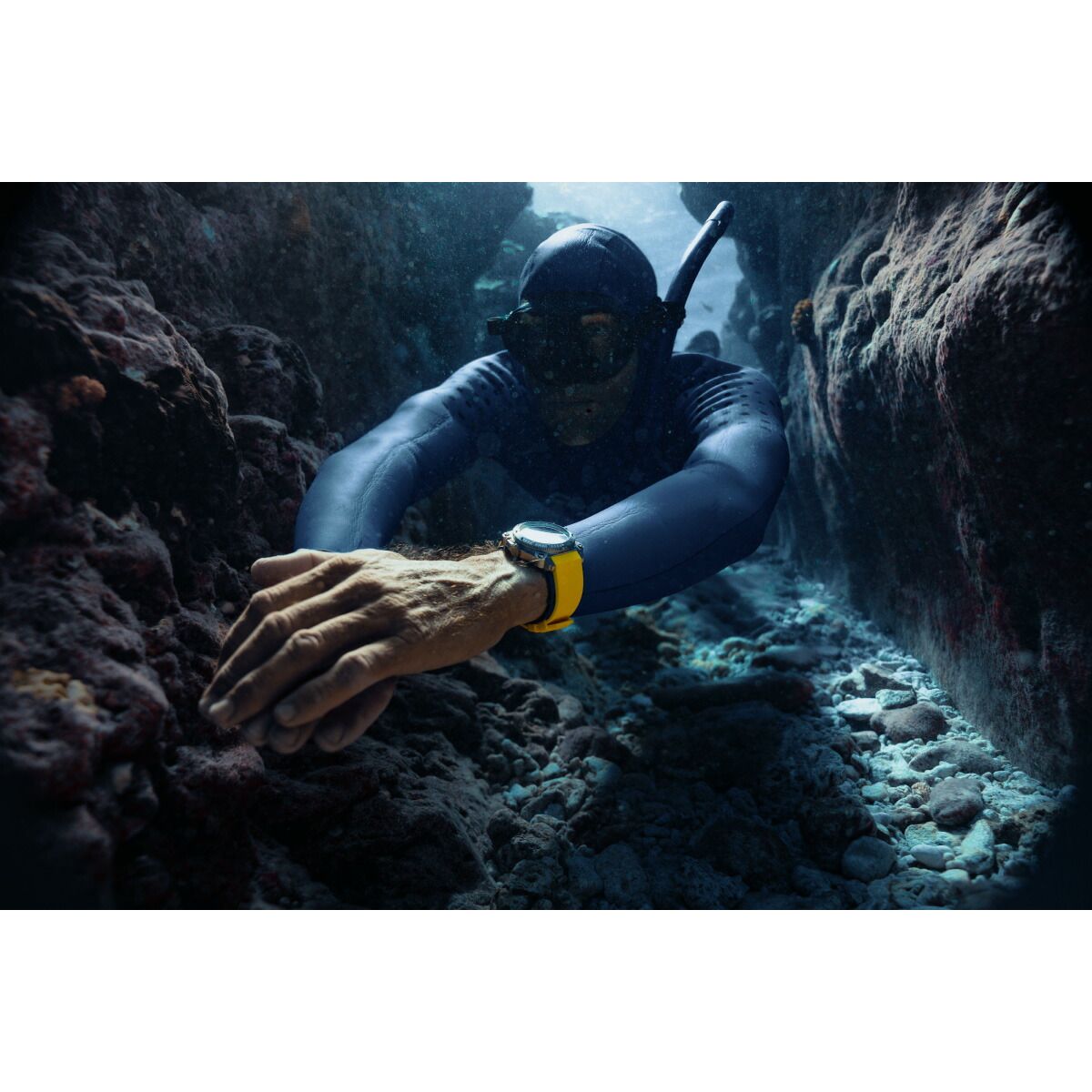 | 100気圧(1000m)防水機能に加え、ヘリウム混合気体を使った飽和浸水対応のヘリウムエスケープバルブを搭載する「カーキ ビロウゼロ」は、深海の冒険での完璧なパートナーです。凸型のサファイアクリスタルが潜水中も安全性を確保。鮮やかなイエローラバーストラップや、サテン仕上げの46mmのチタン製ケースは、重厚なイエローの潜水艦を連想させます。海のパイオニアのために作られたクラシカルなマリンウォッチです。 |