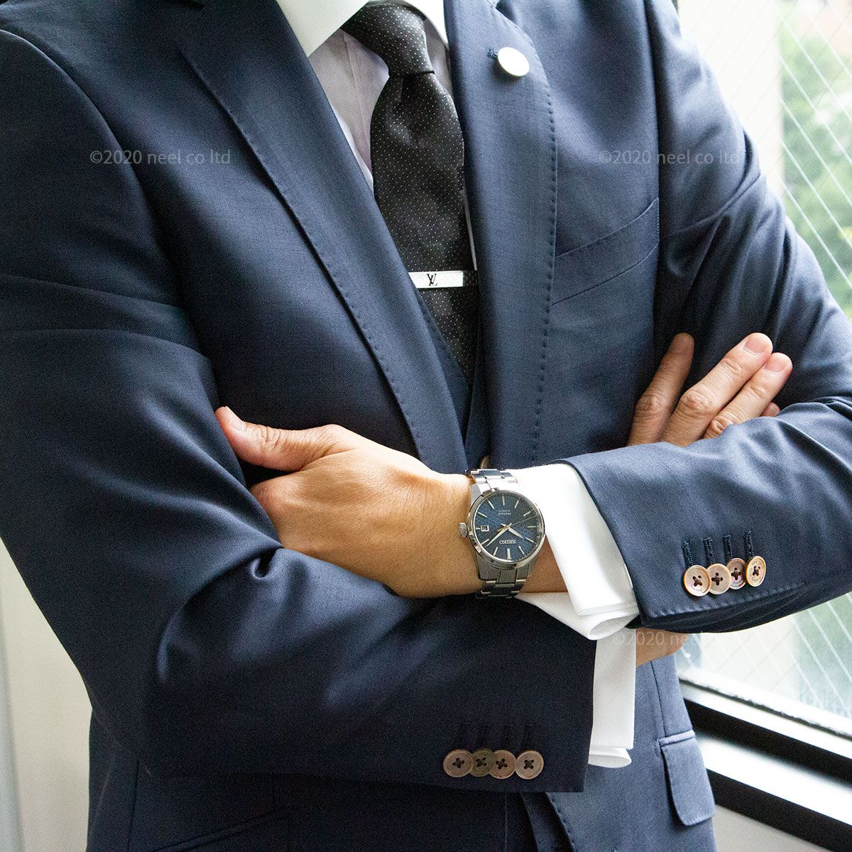 ダイヤルカラーには日本の伝統色の中でもシックな色味である藍鉄(あいてつ)を採用。 ダイヤルパターンである麻の葉紋様を日本の伝統色で表現することによって、スーツスタイルにもマッチするスタイリッシュな装いを実現しました。外装