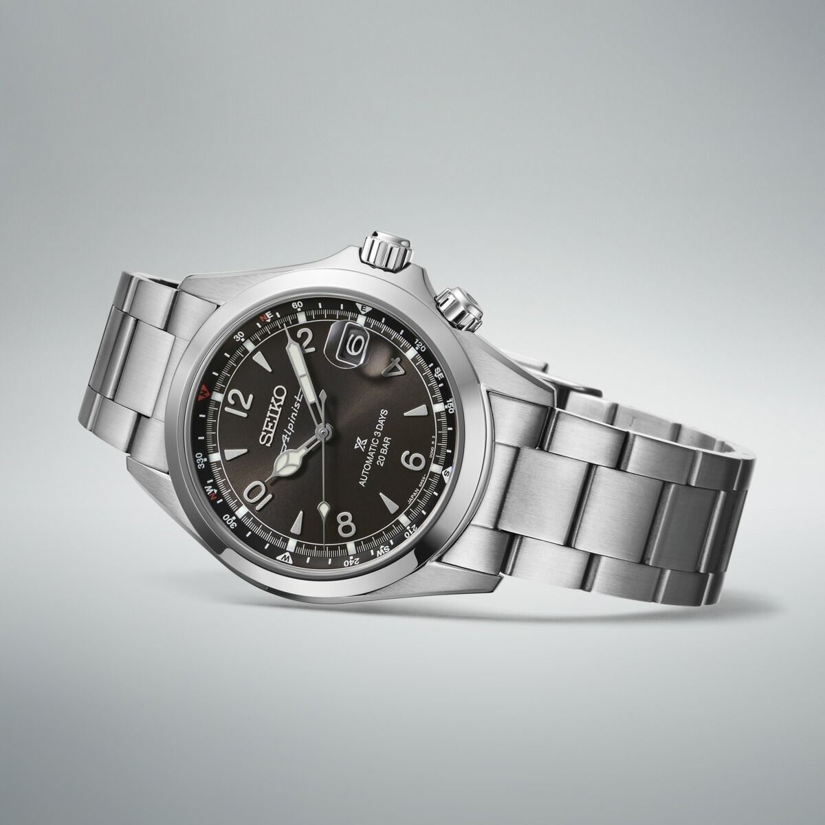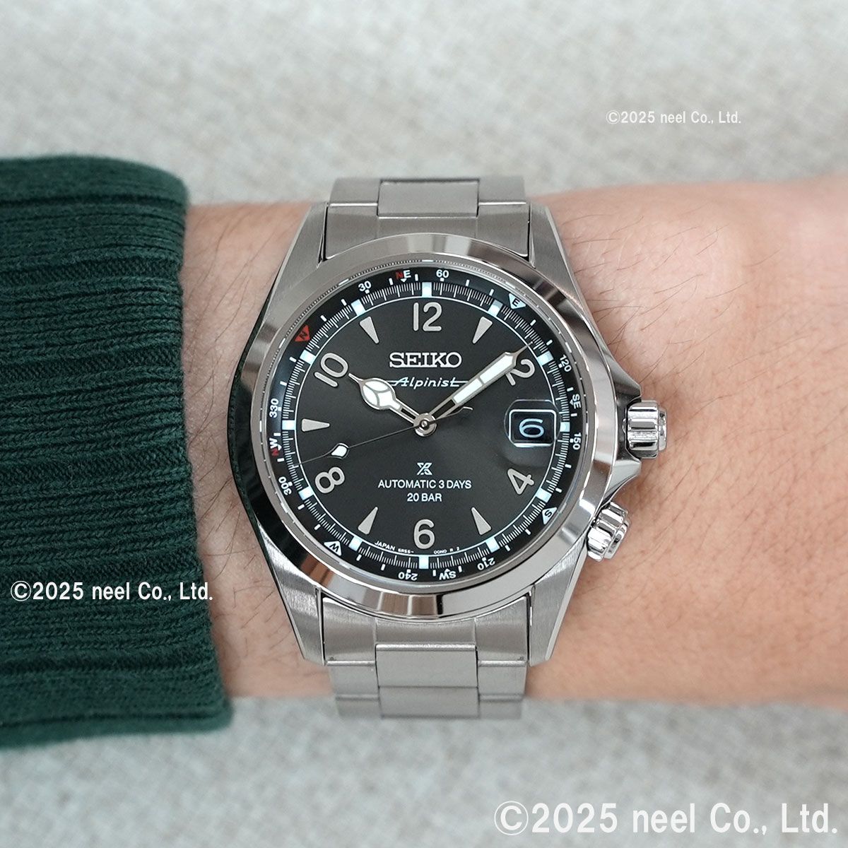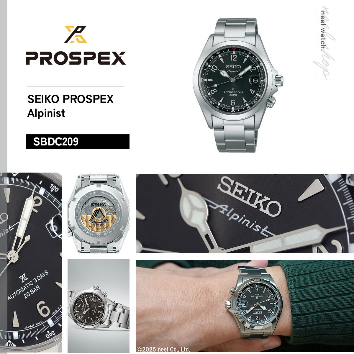 アルピニストのDNAを継承しプロスペックスに相応しい性能にスペックアップした新モデルが登場高い信頼性と3日間(約72時間)のロングパワーリザーブを誇るメカニカルムーブメントCal.6R55を搭載。ダイヤシールド加工を施すことで小傷が付きにくく、美しい外観の維持にも配慮。1959年に誕生した初代(ローレル)アルピニスト伝統のロゴタイプ「Alpinist」をダイヤル12時Seiko下に冠し、裏ぶたにはアルピニストを象徴する山脈をモチーフにしたマークを配する事でアルピニストならではの世界観を際立たせている。