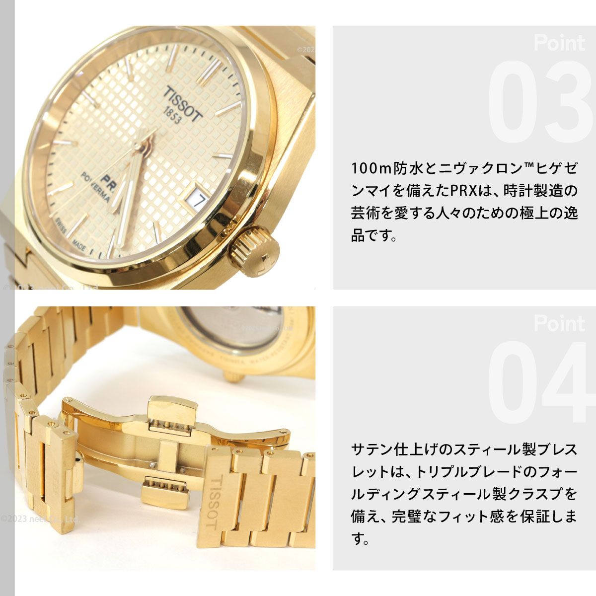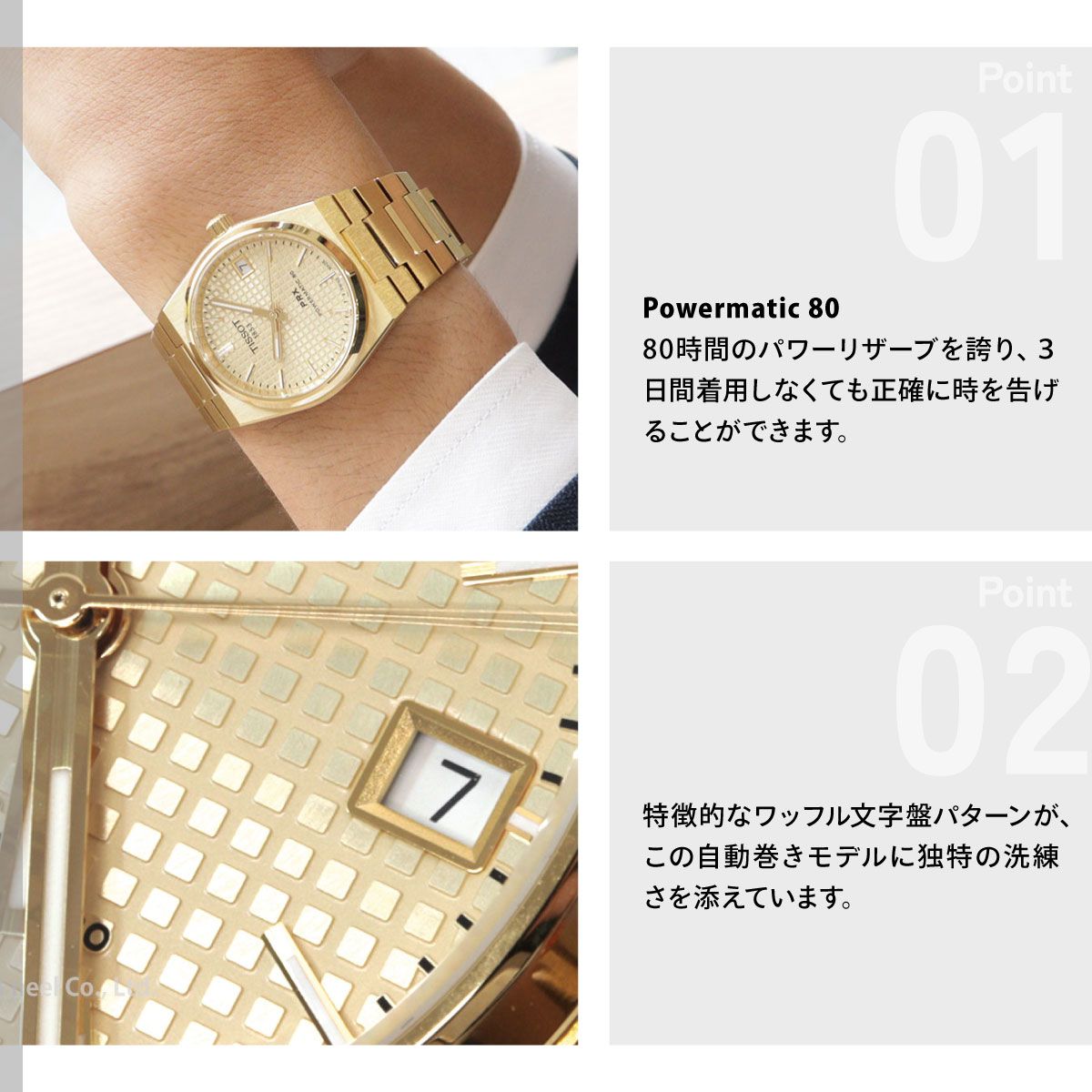 | 1978年のアイコニックなモデルからインスピレーションを得たティソ PRX 35mm パワーマティック80は、この永遠のデザインに新たな息吹を吹き込み、ヴィンテージの魅力とモダンな機能性を見事に融合させました。PRXの元となったモデルのオリジナルのケースサイズを再び採用し、新たに自動巻きムーブメントを搭載することにより、ティソはそのルーツに忠実なままの形で、ラインナップを拡充します。ティソ PRX 35mm パワーマティック80は、単なる時計ではありません。これは70年代後半のエッセンスを体現したステートメントピースです。その洗練された曲線とパイオニア精神は、クラシックウォッチの魅力を好まれる方にとって欠かせない、紛れもないスタイルアイコンです。あらゆる手首に対応する自動巻きの多機能ウォッチ ティソ PRX 35mm パワーマティック80は、その適応性の高さと普遍的な魅力によって、ドレッシーなシーンからカジュアルなシーンまで、どんなスタイルにもぴったりなタイムピースです。高級感あふれる仕上げと完璧な品質により、常に高級感のある見た目と風合いを演出します。エンボスド・チェッカード・パターンの文字盤が特徴的なこの自動巻きモデルは、クォーツモデルと一線を画し、この特別な時計にユニークなタッチを加えています。 |