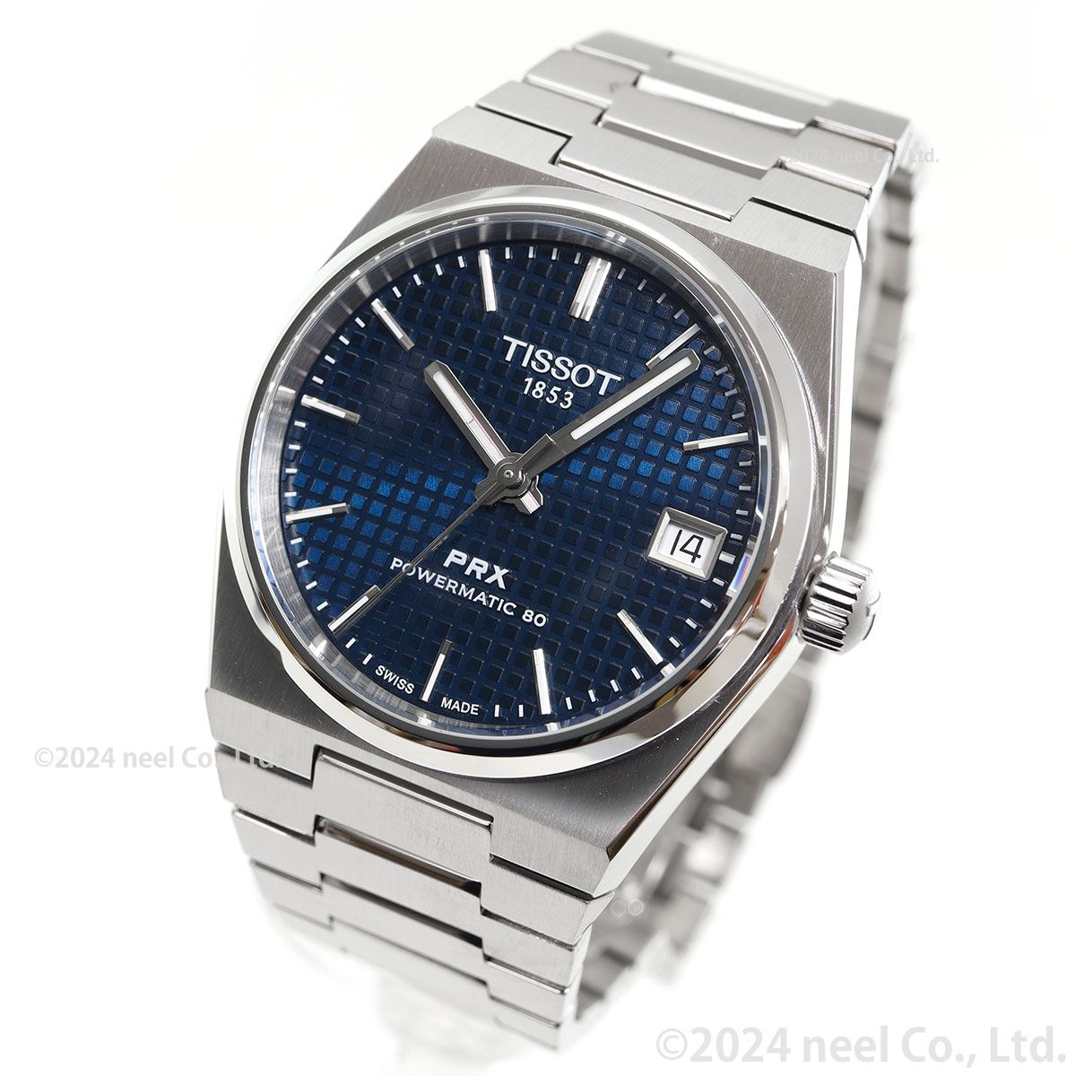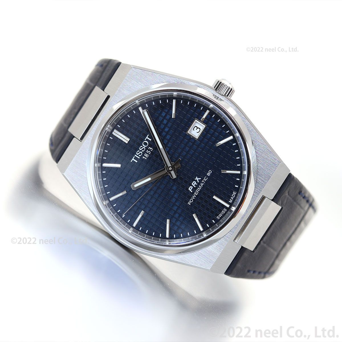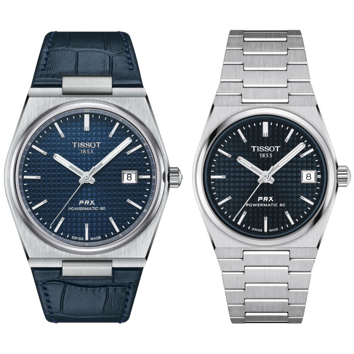 Late‘70sの金曜日の夜のレトロでクールな空気感と熱気を纏ったタイムピース、Tissot PRX Automatic[ティソ PRX オートマティック]は、1978年のオリジナルモデルを再解釈し、より洗練させ、より高精度にアップデートしたコレクション。スリムなデザインとエンボスド・チェッカード・ダイアルパターンによってクラスアップしたダイアルが、上質なレトロ感を演出します。「PR」は”Precise and Robust(高精度かつ堅牢)”を意味し、「X」は”10気圧(100m/330ft)防水”をローマ数字で表現したTissot PRX。直径40mmのケース径に、このモデル最大の特徴であるスリムでソリッドなデザインを維持したケース厚10.93mmを実現しました。また、滑らかで上質なポリッシュ仕上げのベゼルは、トノー型ケースが描くゆるやかで美しいラインをより際立たせており、ベゼルに見られるポリッシュ仕上げの面取りと垂直方向に走るサテン仕上げを組み合わせることで、Tissot PRXがもつソリッドな質感に柔らかな印象を添えています。ムーブメントには最長80時間のロングパワーリザーブを備える高精度オートマティックムーブメント、Powermatic 80を搭載。このスイス製ムーブメントには、優れた耐磁性をもつ非磁性合金Nivachron?製ひげゼンマイを搭載してデジタル機器に囲まれた現代生活においても高精度を維持する実用性を備える一方で、ムーブメントが時を刻む様を眺めることができるシースルーケース バックを採用しています。