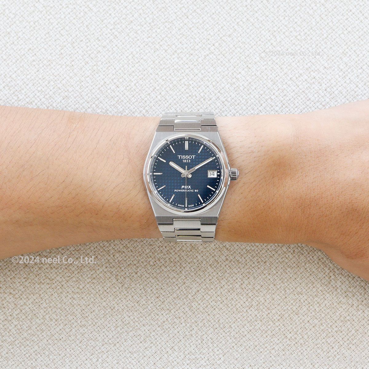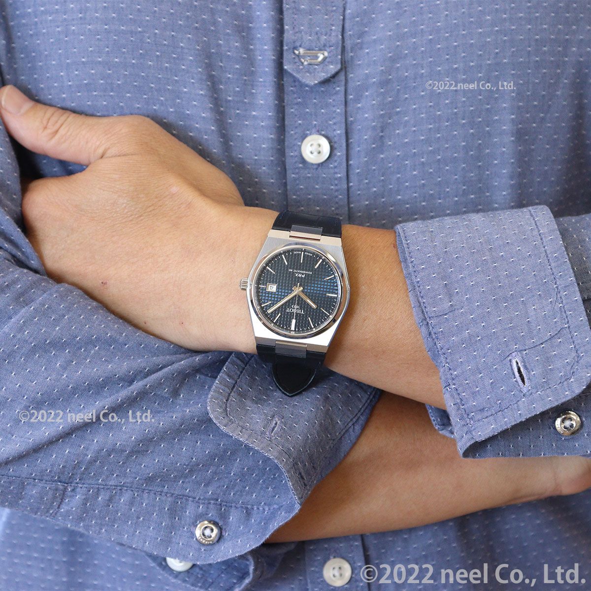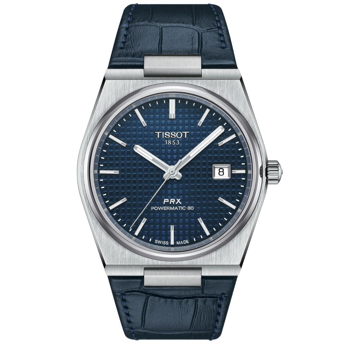 Late‘70sの金曜日の夜のレトロでクールな空気感と熱気を纏ったタイムピース、Tissot PRX Automatic[ティソ PRX オートマティック]は、1978年のオリジナルモデルを再解釈し、より洗練させ、より高精度にアップデートしたコレクション。スリムなデザインとエンボスド・チェッカード・ダイアルパターンによってクラスアップしたダイアルが、上質なレトロ感を演出します。「PR」は”Precise and Robust(高精度かつ堅牢)”を意味し、「X」は”10気圧(100m/330ft)防水”をローマ数字で表現したTissot PRX。直径40mmのケース径に、このモデル最大の特徴であるスリムでソリッドなデザインを維持したケース厚10.93mmを実現しました。また、滑らかで上質なポリッシュ仕上げのベゼルは、トノー型ケースが描くゆるやかで美しいラインをより際立たせており、ベゼルに見られるポリッシュ仕上げの面取りと垂直方向に走るサテン仕上げを組み合わせることで、Tissot PRXがもつソリッドな質感に柔らかな印象を添えています。ムーブメントには最長80時間のロングパワーリザーブを備える高精度オートマティックムーブメント、Powermatic 80を搭載。このスイス製ムーブメントには、優れた耐磁性をもつ非磁性合金Nivachron?製ひげゼンマイを搭載してデジタル機器に囲まれた現代生活においても高精度を維持する実用性を備える一方で、ムーブメントが時を刻む様を眺めることができるシースルーケース バックを採用しています。