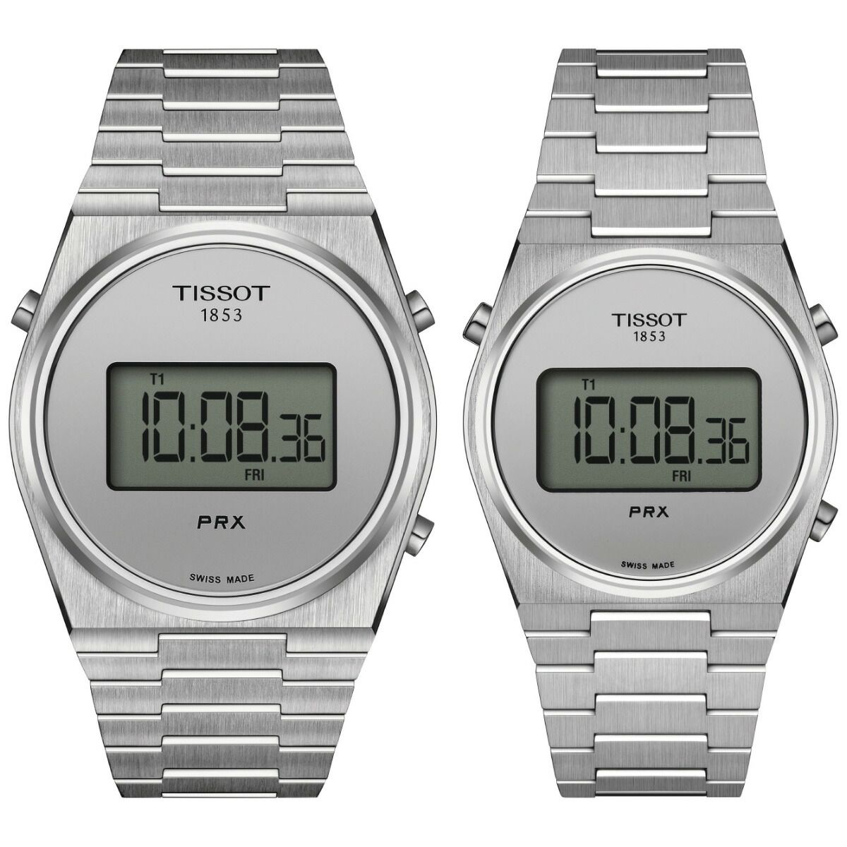 1978年に発表されたティソ PRXのアイコニックなデザインとデジタルクオーツ(キャリバー 4012)が調和したティソ PRX デジタル。過去のレガシーとデジタルとのハイブリッドを見事に表現し、レトロな美しさとモダニズムをシームレスに融合させたこの時計は、今日の先駆者のためのタイムキーパーです。35mmと40mm、そして多彩なカラーバリエーションから選べるPRX デジタルは、あらゆる手首に対応し、デュアルタイムゾーン、デイデイト、クロノグラフなどの多彩な機能が多くのニーズに応えます。100m防水で、サテン仕上げのブレスレットとトリプルブレード・フォールディング・クラスプで固定されたこれらのタイムピースは、耐久性と快適性の両方を兼ね備えて作られています。ティソ PRX デジタルコレクションは、時を超えた旅、過去と未来への賛辞を象徴しています。