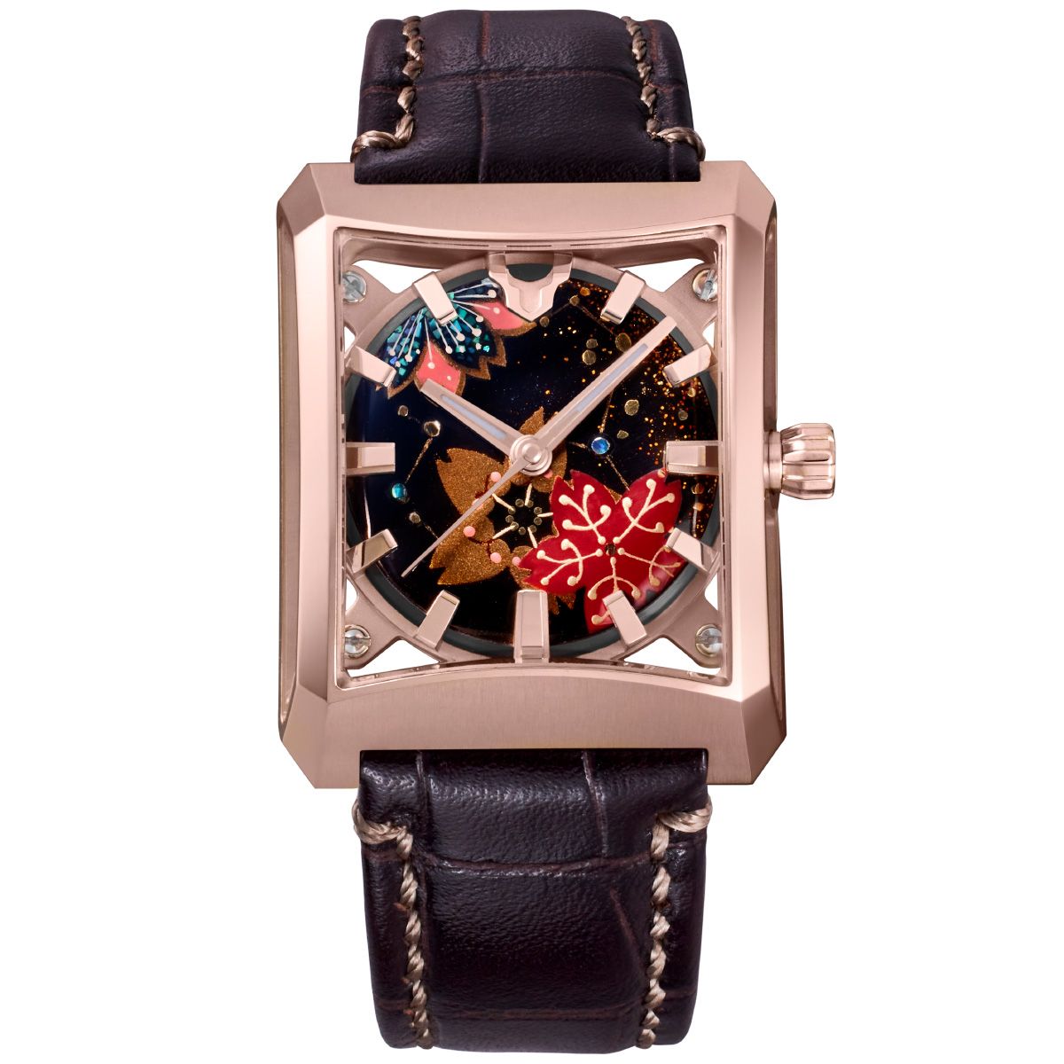 ミナセ MINASE 腕時計 メンズ レディース 自動巻き JAPAN ART COLLECTION URUSHI 漆 〜蒔絵〜 FIVE WINDOWS Mid size 星見桜 レザーモデル 18Kピンクゴールド VM07-LDBMA0-KPJ