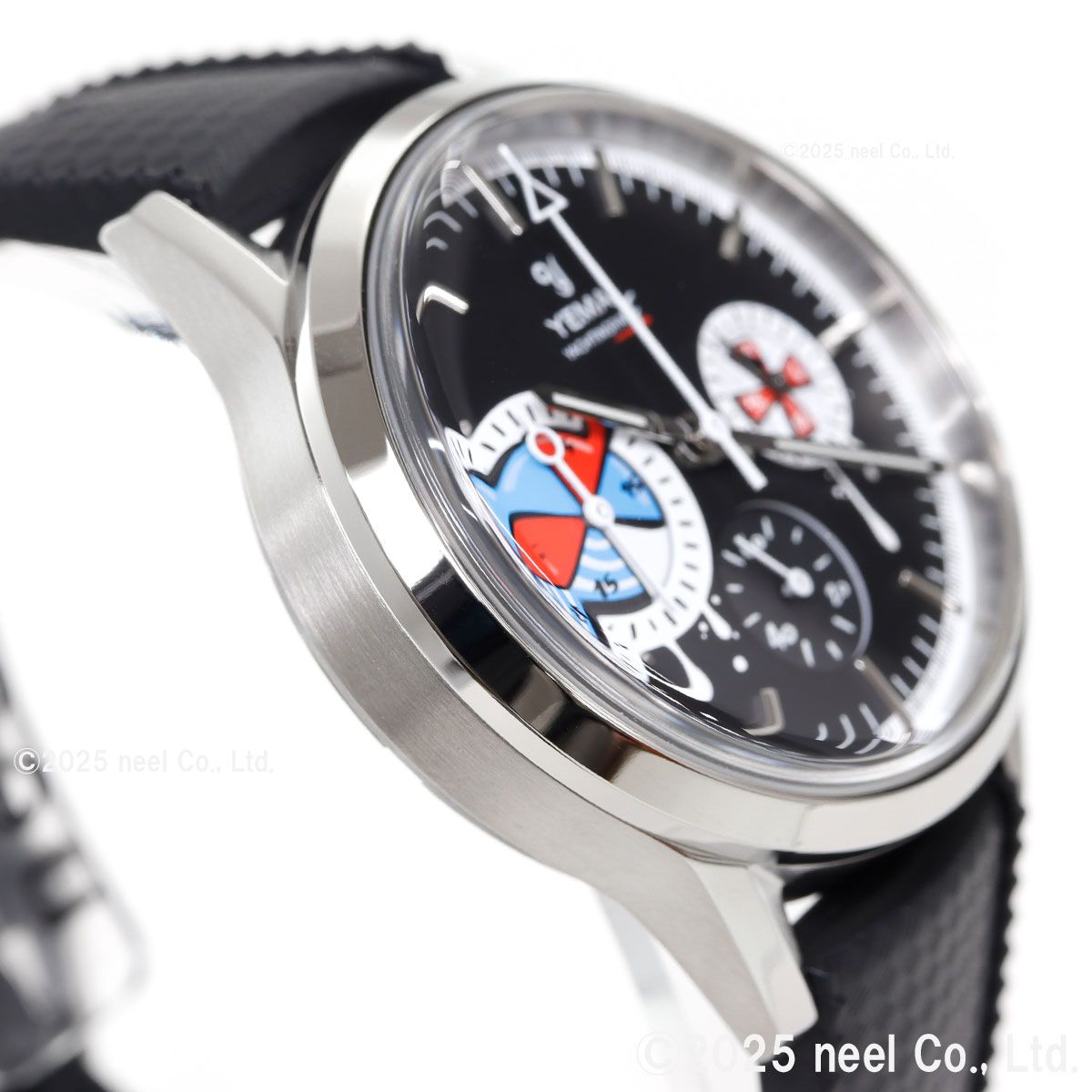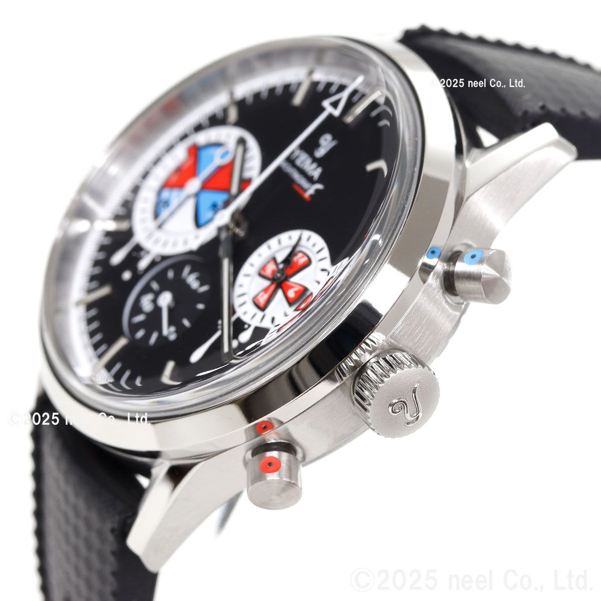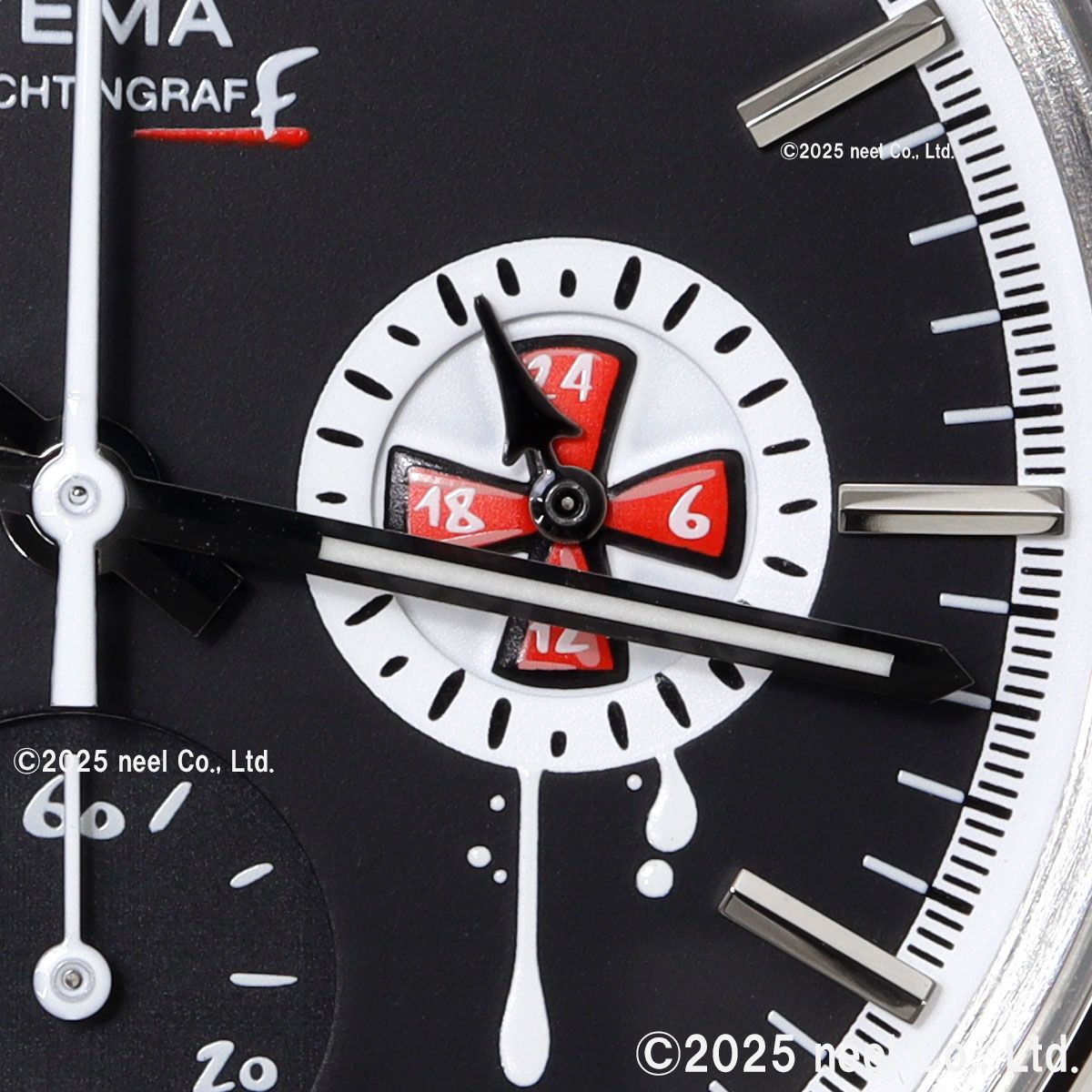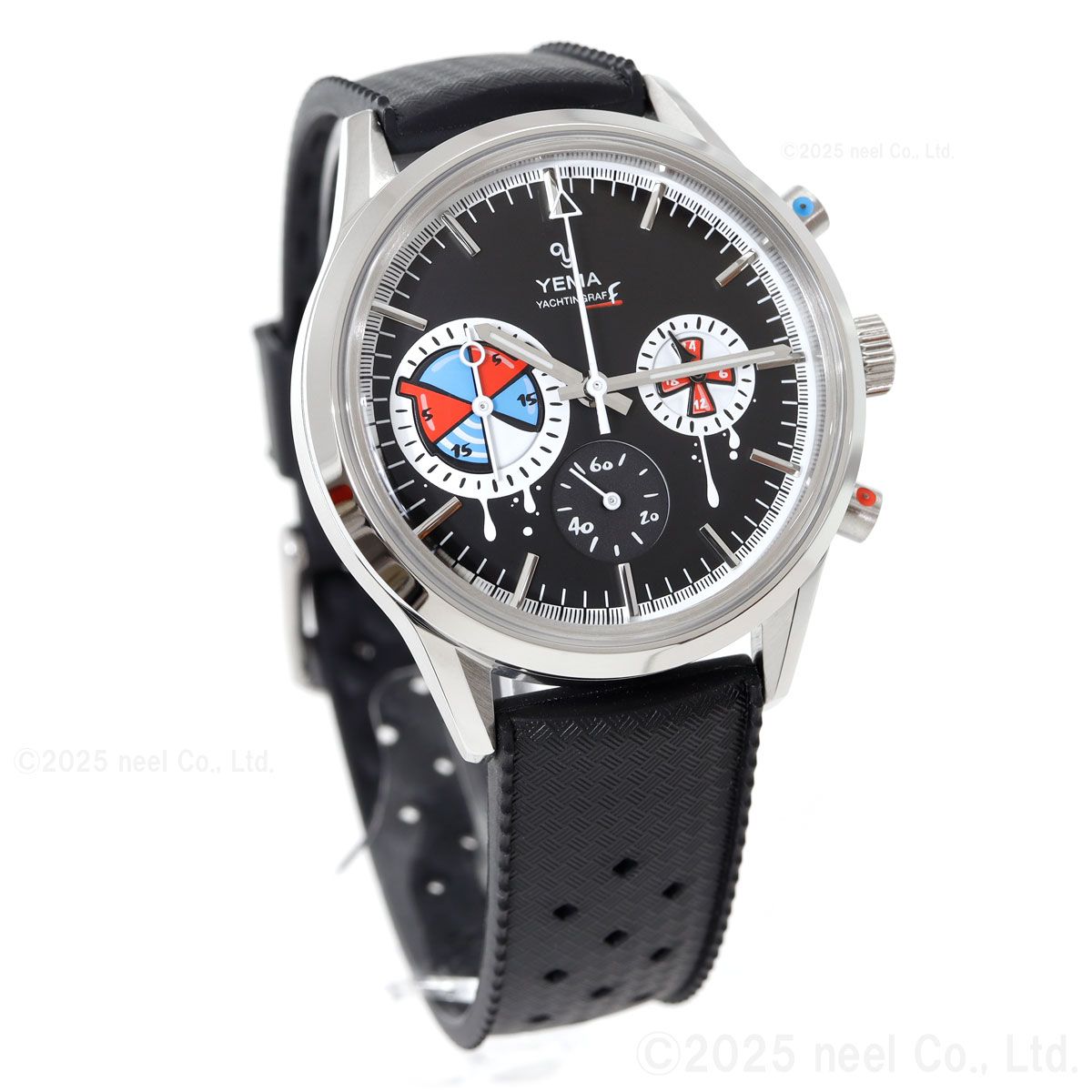 フランス・パリの時計アーティスト、ロマリック・アンドレ氏が率いるseconde/seconde/(セコンド/セコンド)とのコラボレーションモデル。1960年代の歴史的なセーリングクロノグラフが、業界で最も魅力的な『時計の破壊者』のキャンバスに生まれ変わりました。YEMAのヘリテージである『ビッグアイ』のヨッティングラフを、アナーキーでポップなデザインにリミックス。レース中にストリートアーティストに殴られたような文字盤と、小さなスプレー缶のキャップを思わせるクロノグラフプッシャーがユーモラスにその反骨精神を体現しています。裏蓋には『La Croisiere.ma muse』(クルーズ、私のミューズ)という締めのフレーズが刻印。これは70-80年代に放映されたアメリカのTVシリーズ「ラブボート」のフランス語タイトル『La Croisiere s’amuse』(クルーズは楽しい)をもじったものです。